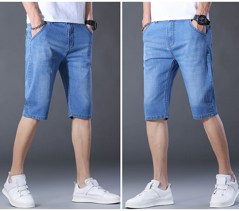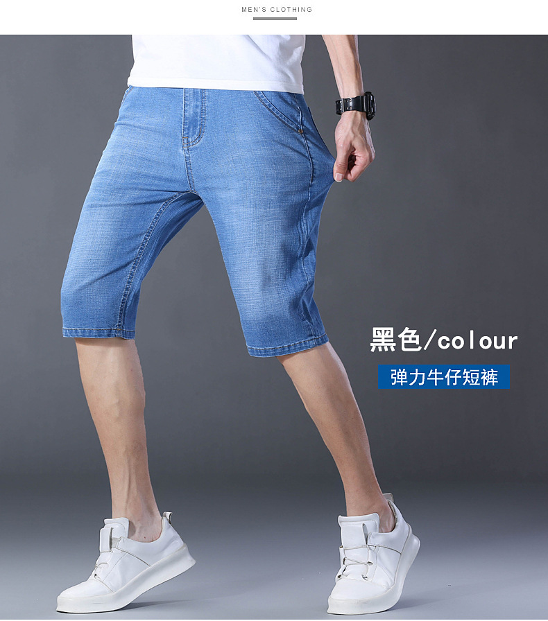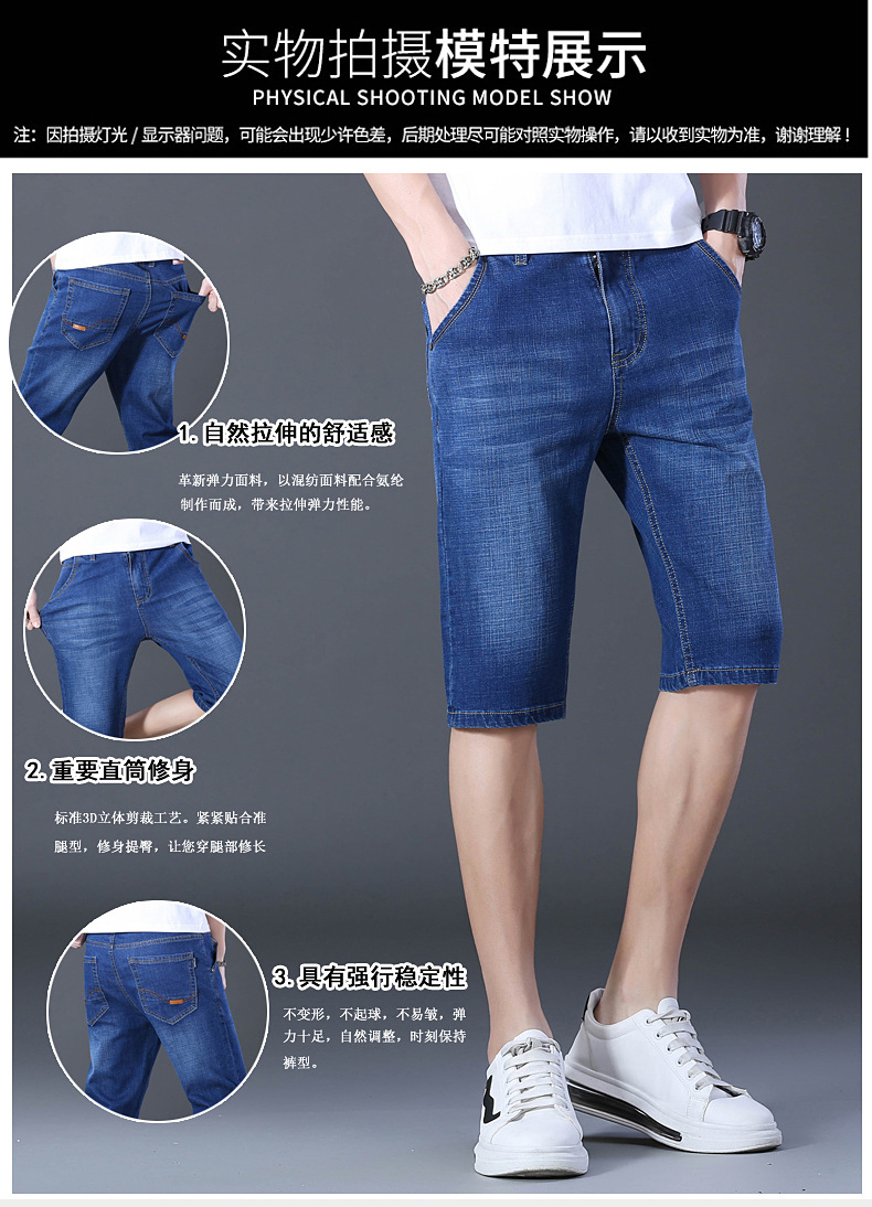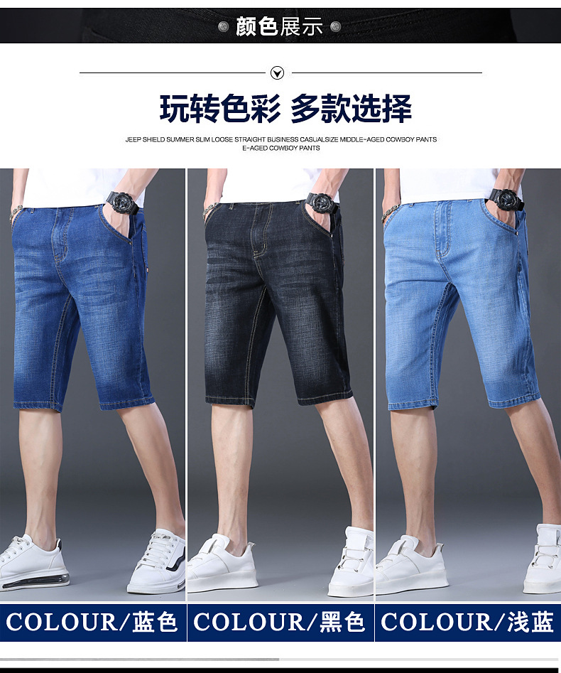 무료 배송 여름 얇은 남성 데님 반바지 남성 캐주얼 청바지 남성 루즈 스트레이트 바지 7부
