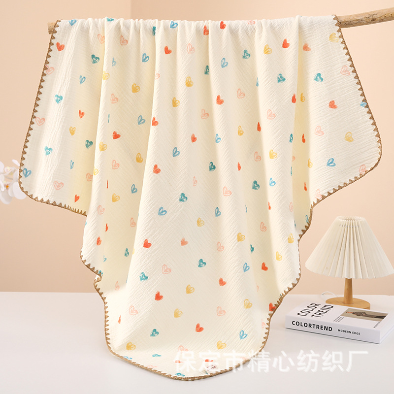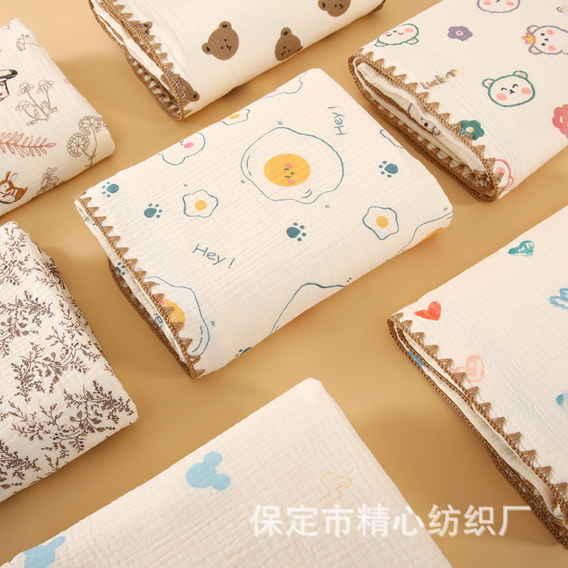 四层皱布浴巾 100*100厘米 单条重252克左右 有包边款和锁边款 各种尺寸可定做