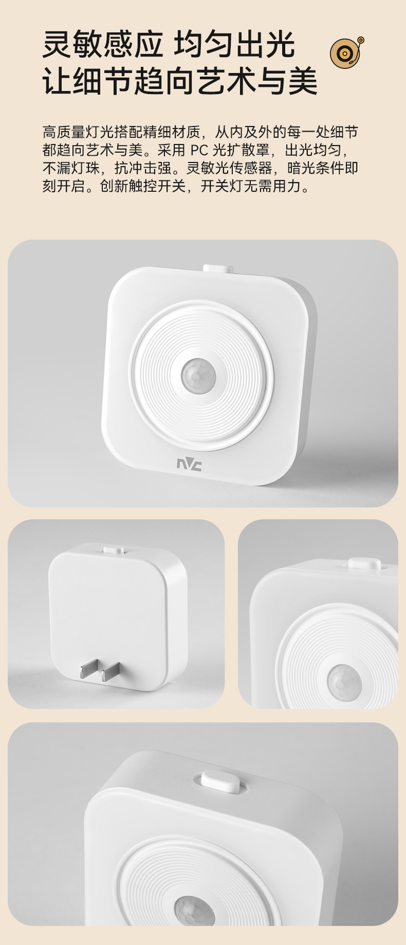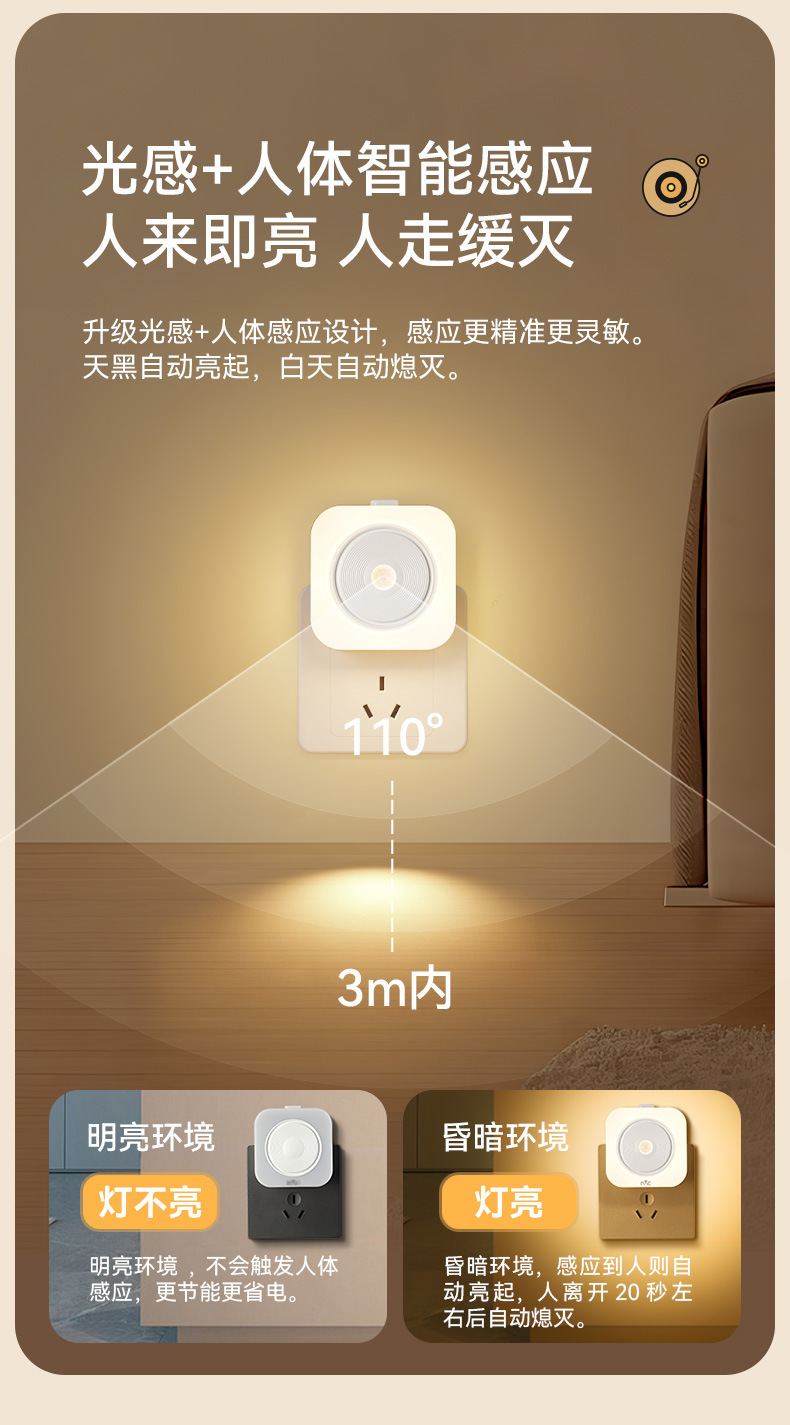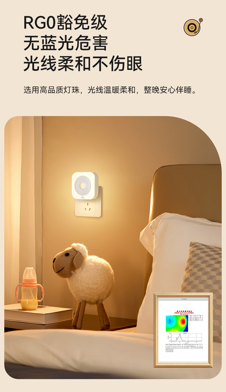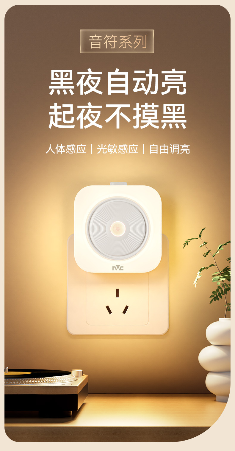 NVC 조명 지능형 센서 야간 조명은 사람들의 도착과 동시에 켜집니다. 침실 야간 아기 수유 눈 보호 침대 옆 플러그인 모델