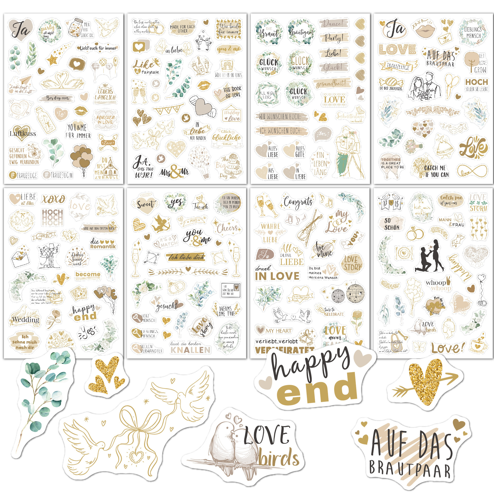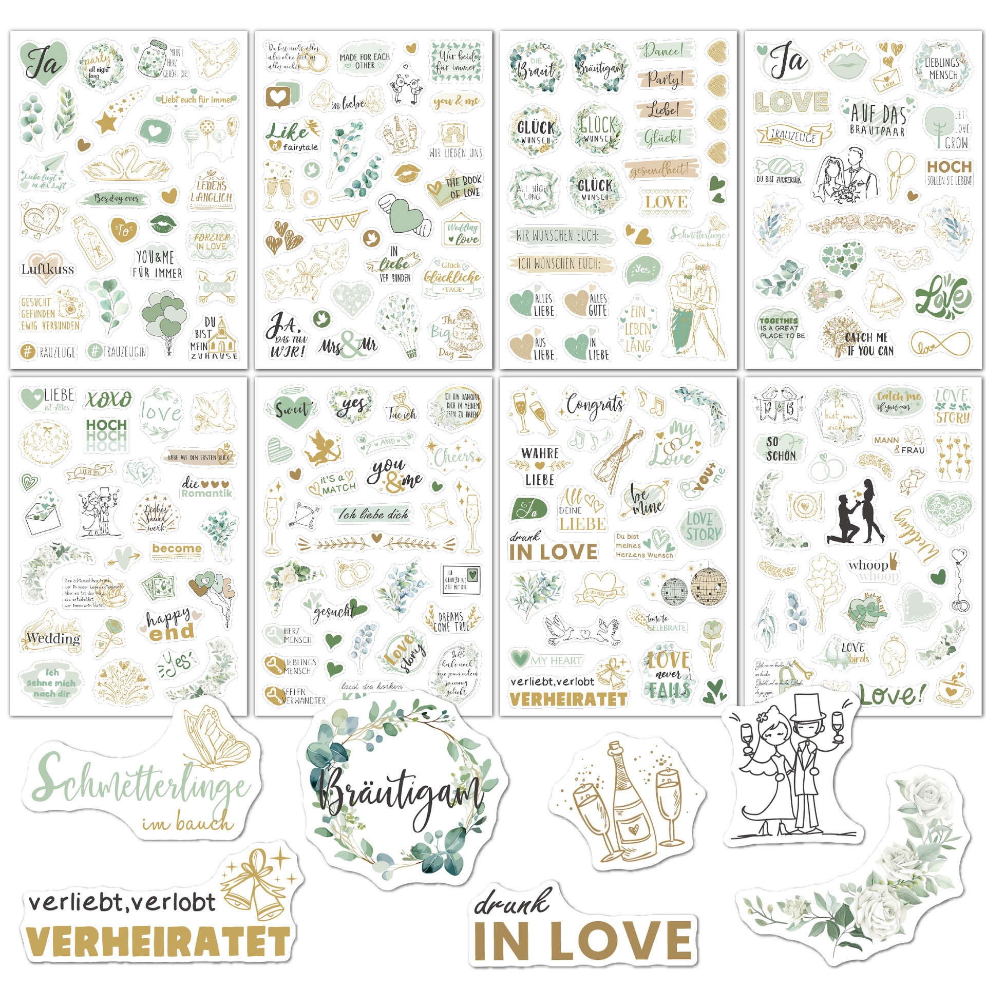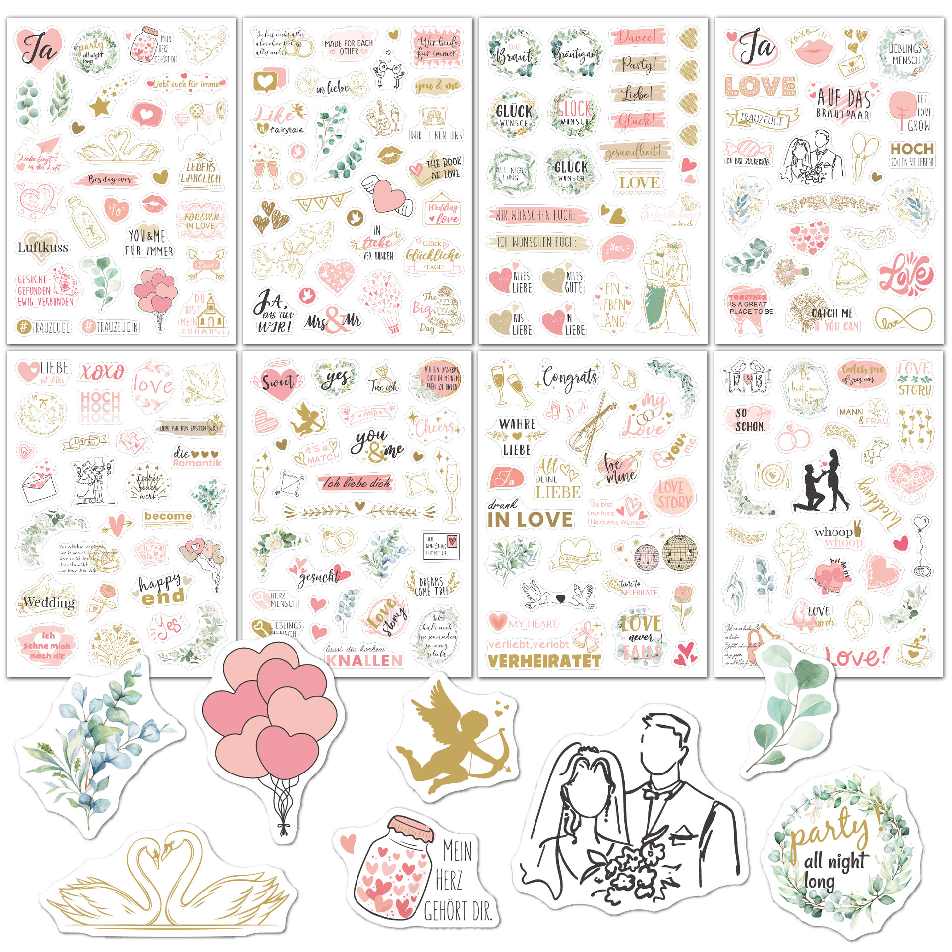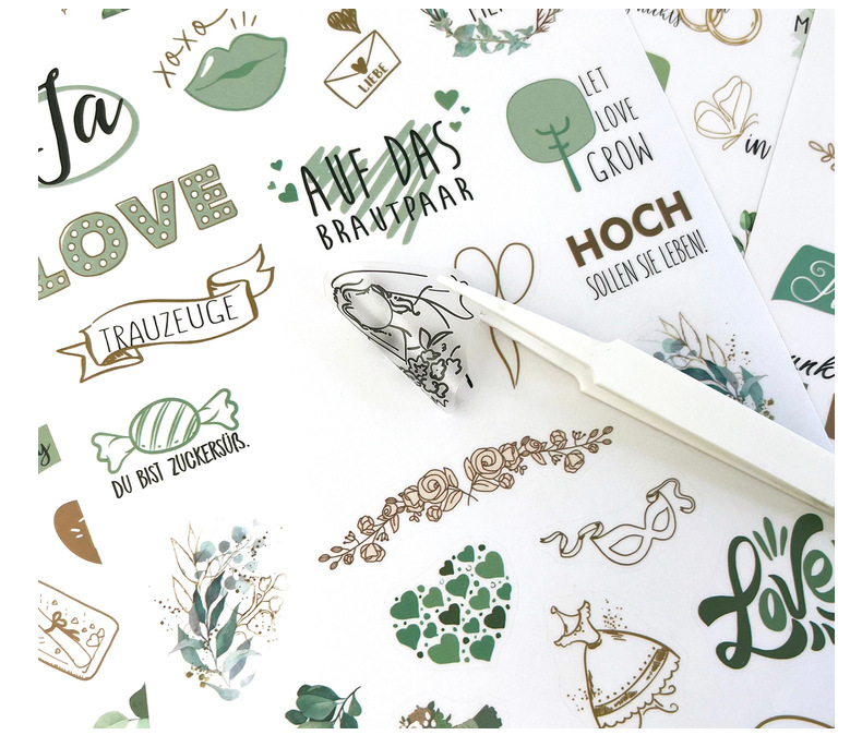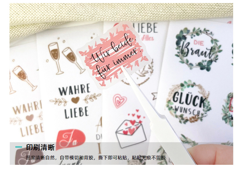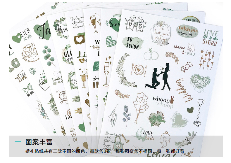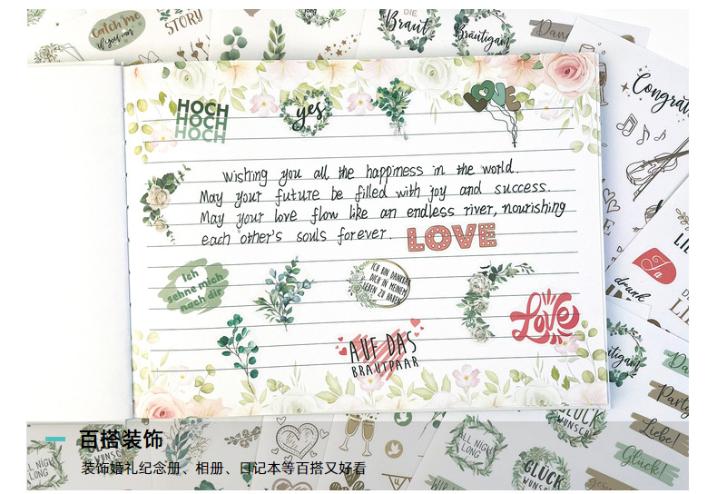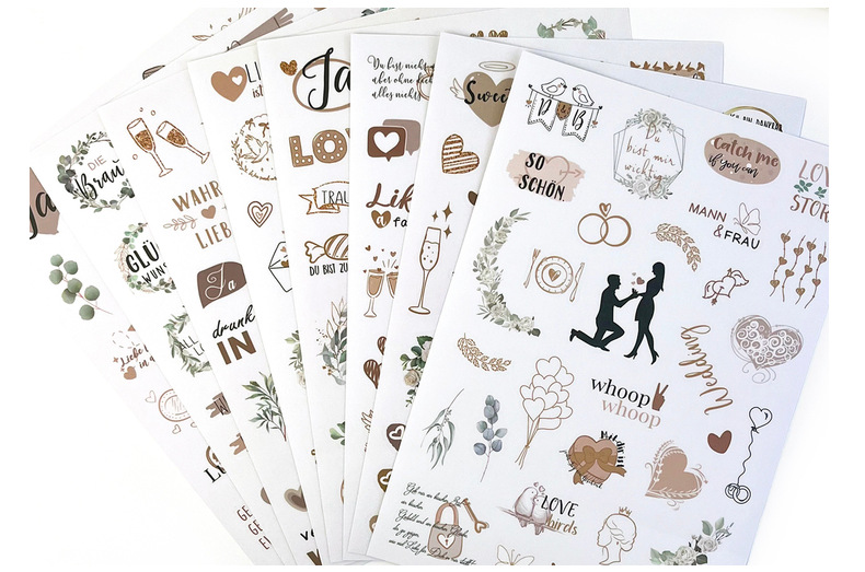 신제품 크로스보더 메시지북 스티커 팩 230개, 플래닝 및 장식용 스크랩북, 8개의 투명 독일어 웨딩 스티커스토어 가기