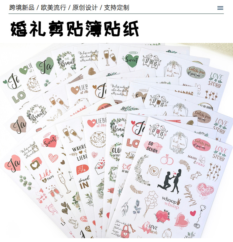 跨境新品剪贴簿婚礼贴纸创意情人节爱心diy装饰策划手帐婚礼贴纸