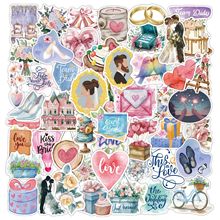 跨境wedding贴纸50枚卡通diy派对计划ins涂鸦电脑行李箱婚礼贴纸