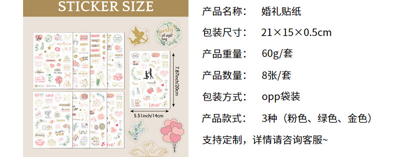 跨境剪贴簿婚礼贴纸创意情人节爱心diy装饰策划手帐婚礼贴纸