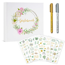亚马逊新品guest book德语留言簿套装记事宾客签到本婚礼线圈金箔