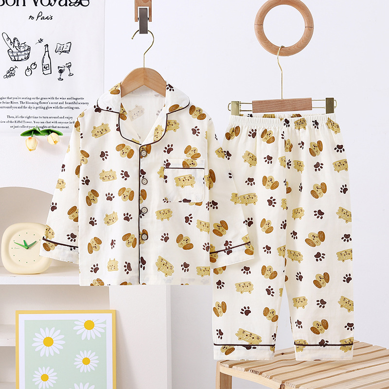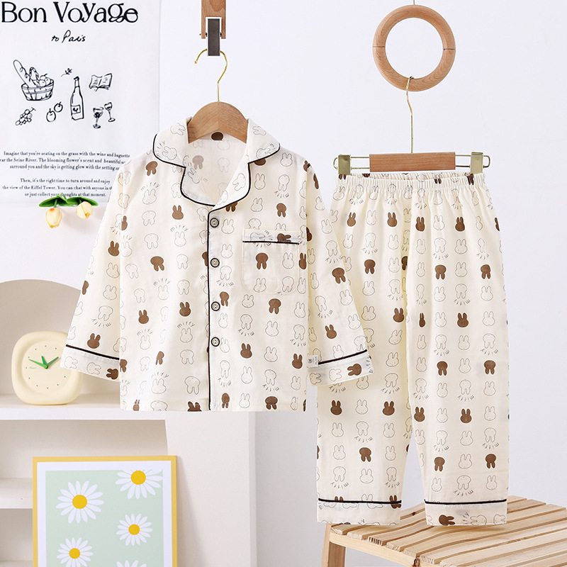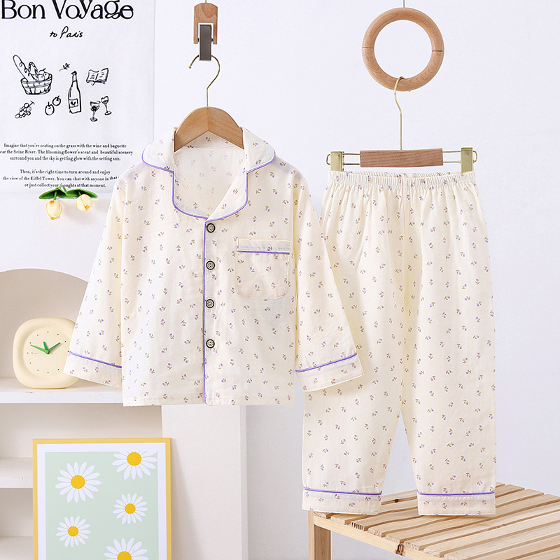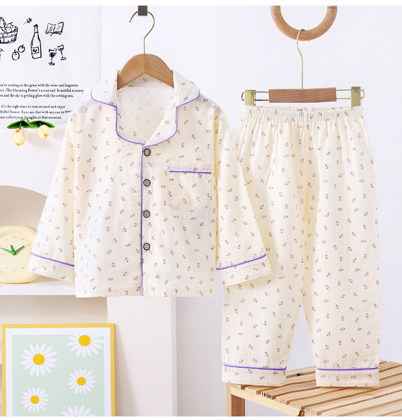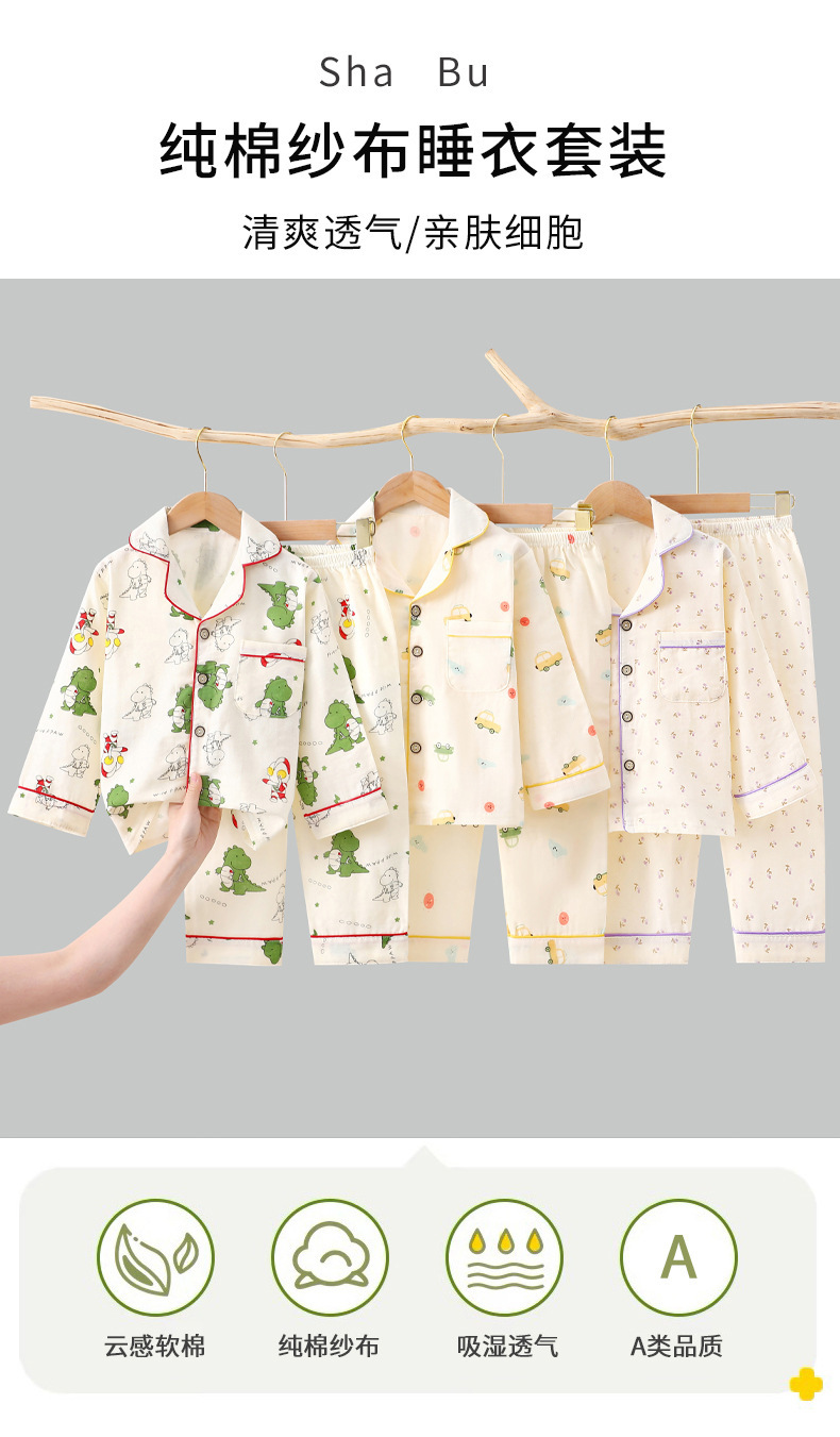 25 년 새 어린이 여름 거즈 홈 옷 남녀 긴 소매 바지 세트 레이저 세트스토어 가기