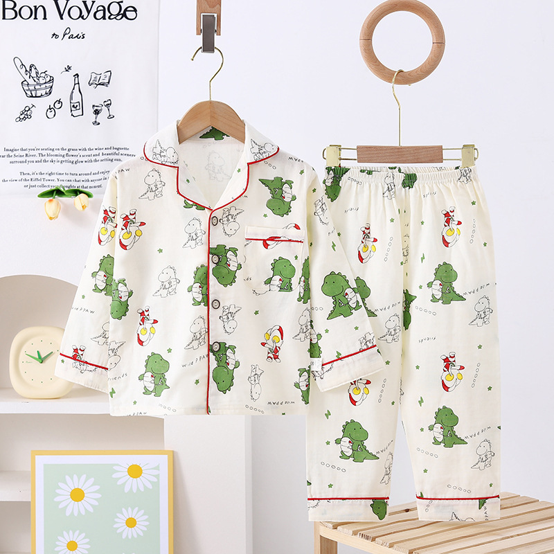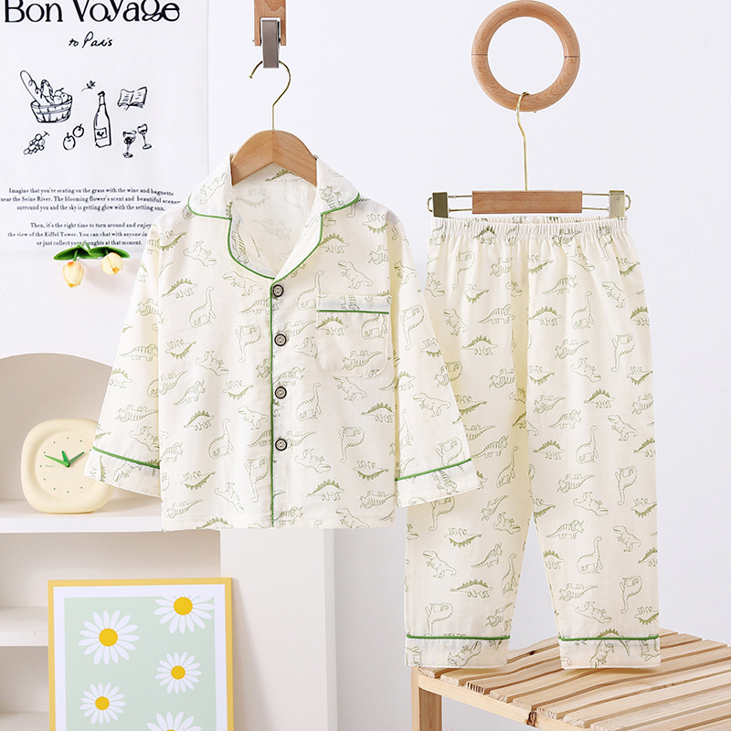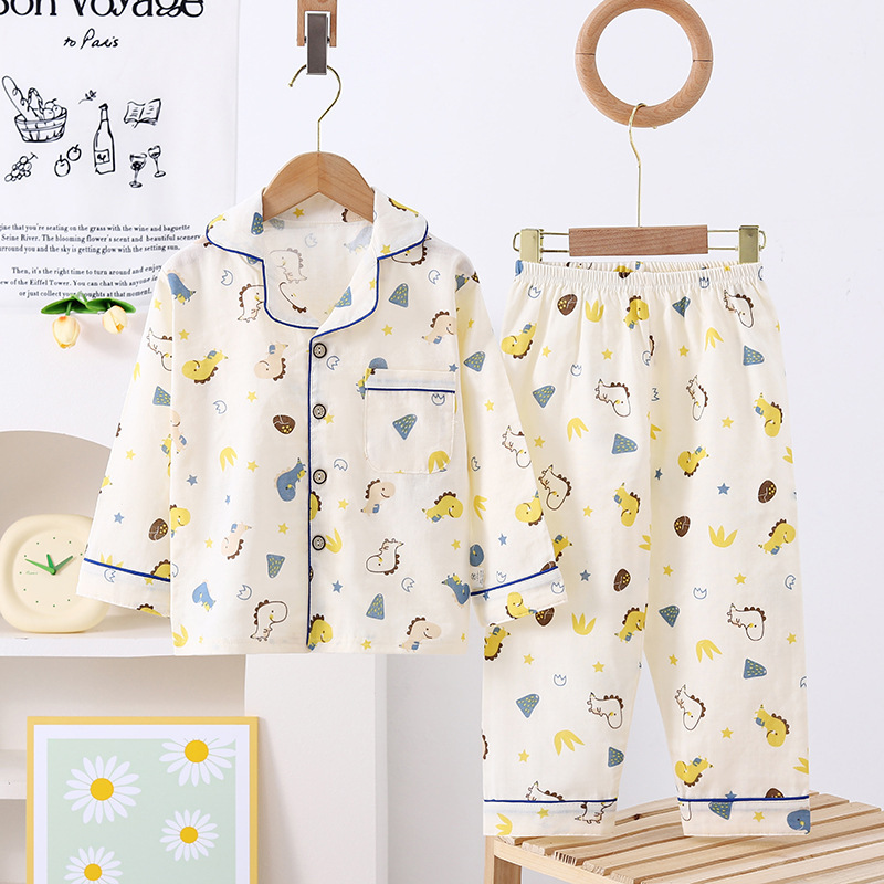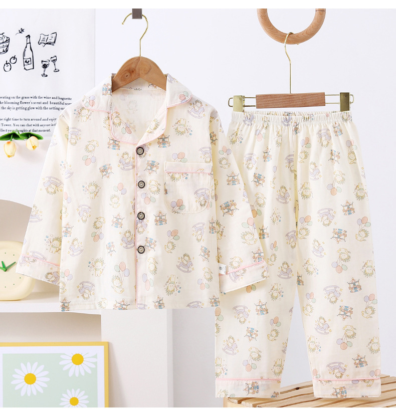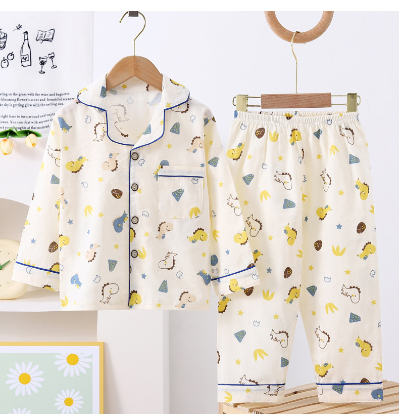 25 년 새 어린이 여름 거즈 홈 옷 남녀 긴 소매 바지 세트 레이저 세트