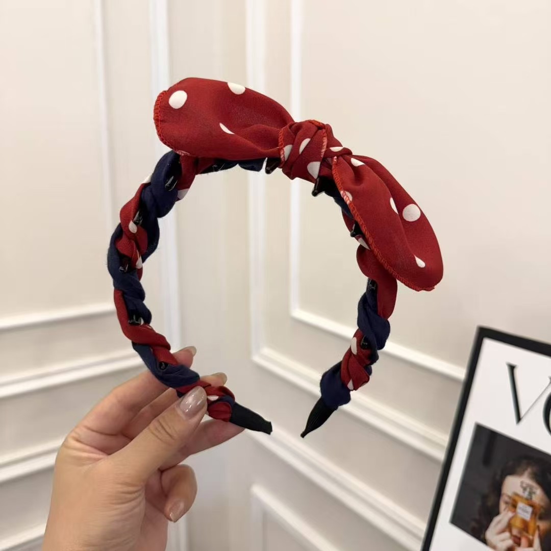 • FG3102-1용 # 빨간색 물방울 무늬 배색 토끼 귀 머리띠