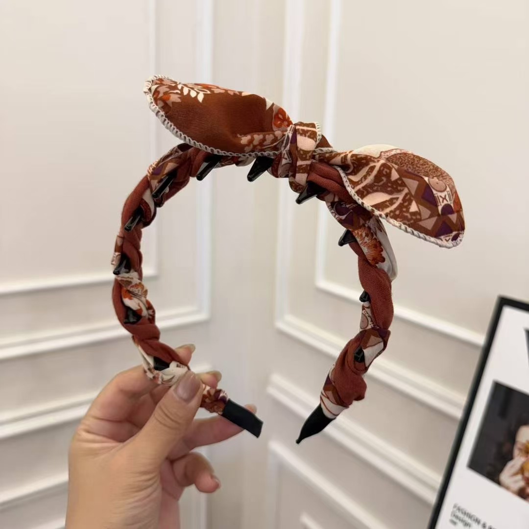 • FG3102-3용#벽돌색 배색 토끼 귀 머리띠