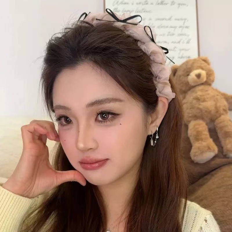 한국식 발레 스타일 리본 메쉬 활 넓은 챙이 달린 헤어 밴드 여성의 이빨 미끄럼 방지 하이 크랜얼 탑 헤드 밴드 올 매치 헤어 클립