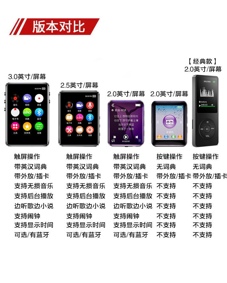 터치 스크린 mp4 블루투스 학생 워크맨 mp3 음악 플레이어 미니 귀여운 화면 영어 사전 2025스토어 가기