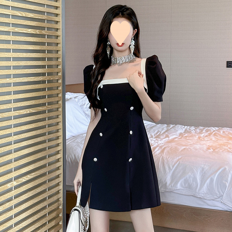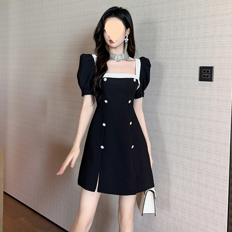 2025 여름 새로운 블랙 원피스 여성 타이트 허리 슬리밍 우아한 헵번 작은 샤넬 스타일 짧은 블랙 원피스스토어 가기