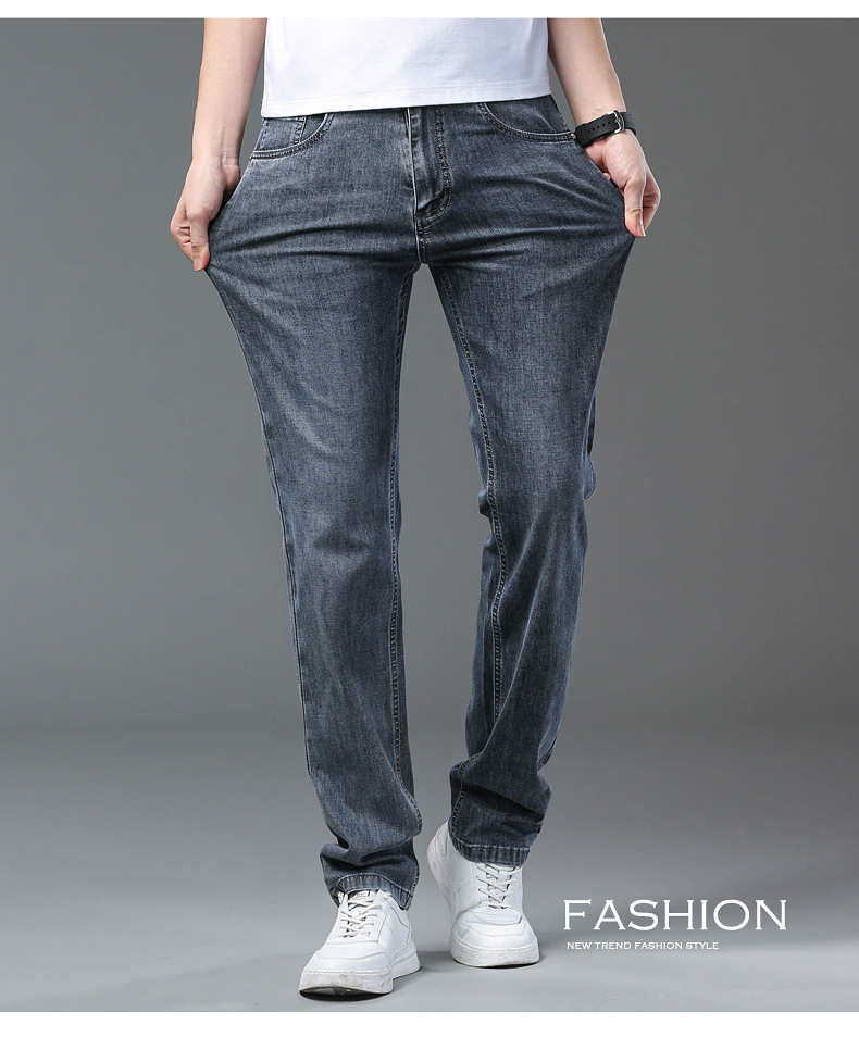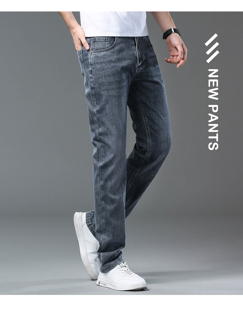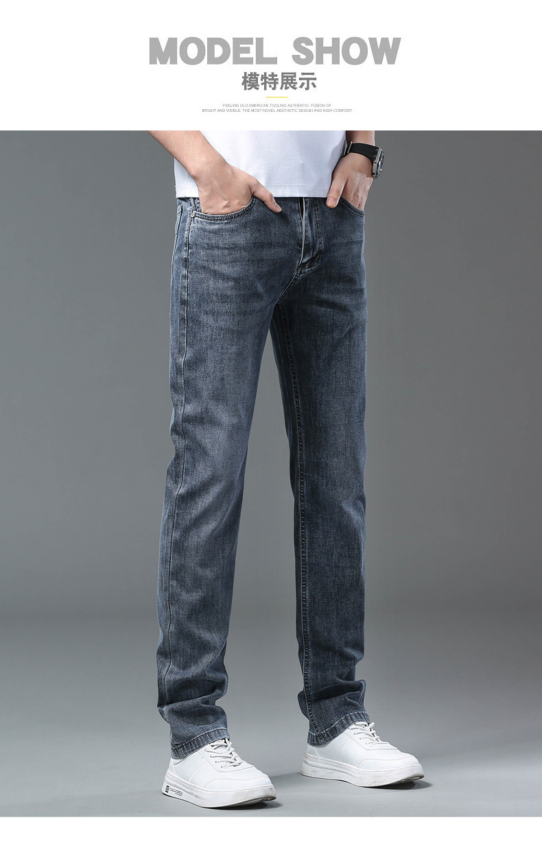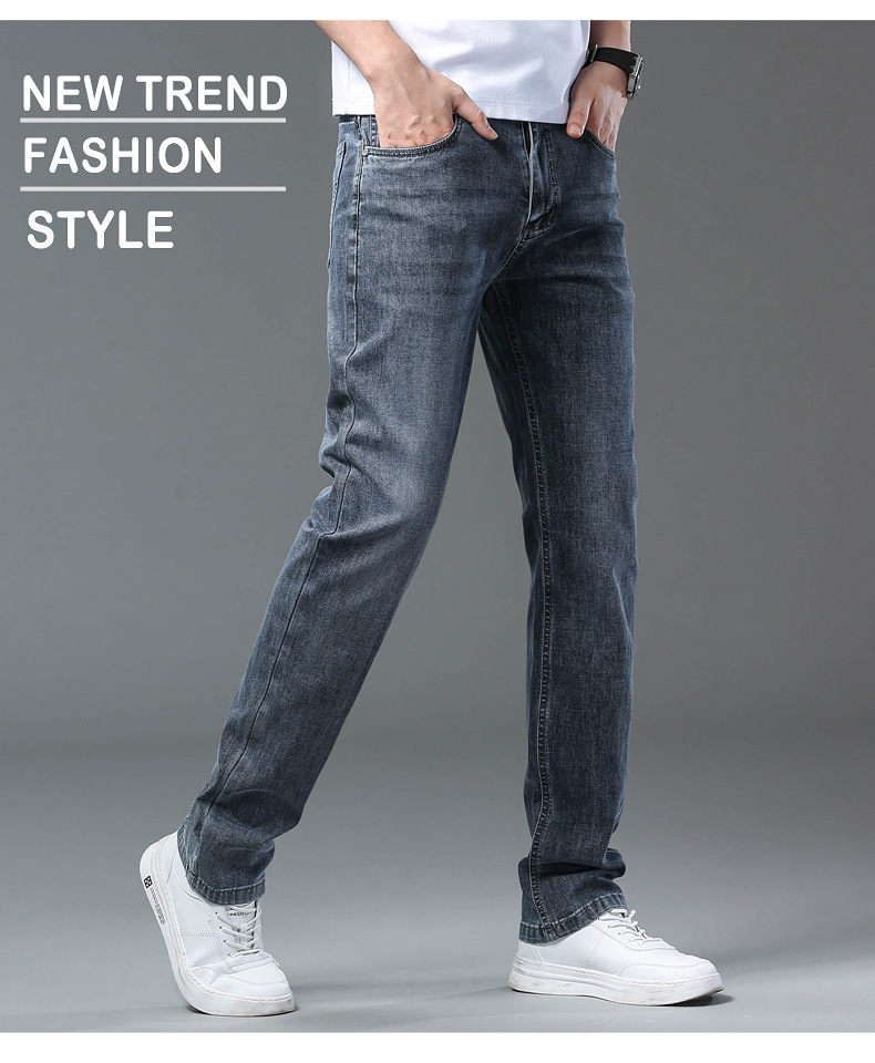 무료 배송 2025 새로운 사계절 가벼운 럭셔리 스트레치 청바지 남성 트렌디 브랜드 긴 바지스토어 가기