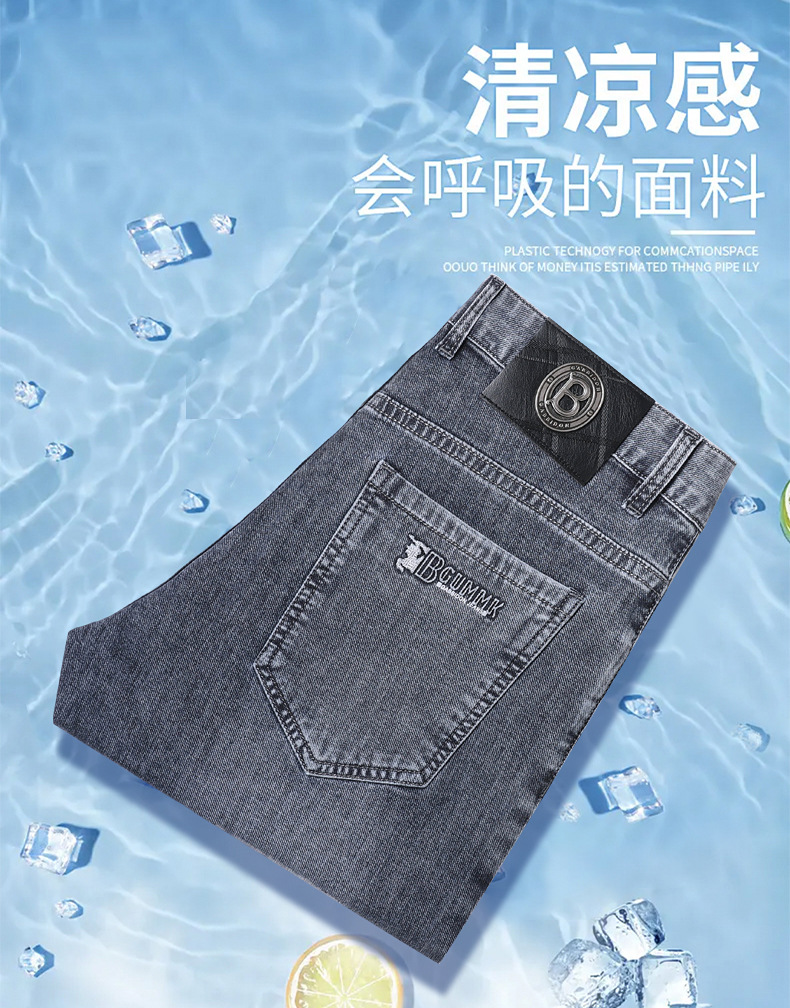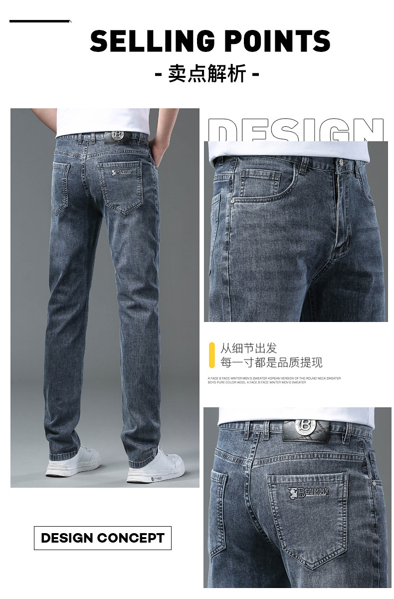 무료 배송 2025 새로운 사계절 가벼운 럭셔리 스트레치 청바지 남성 트렌디 브랜드 긴 바지