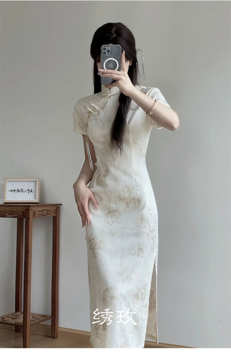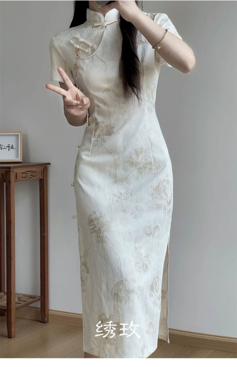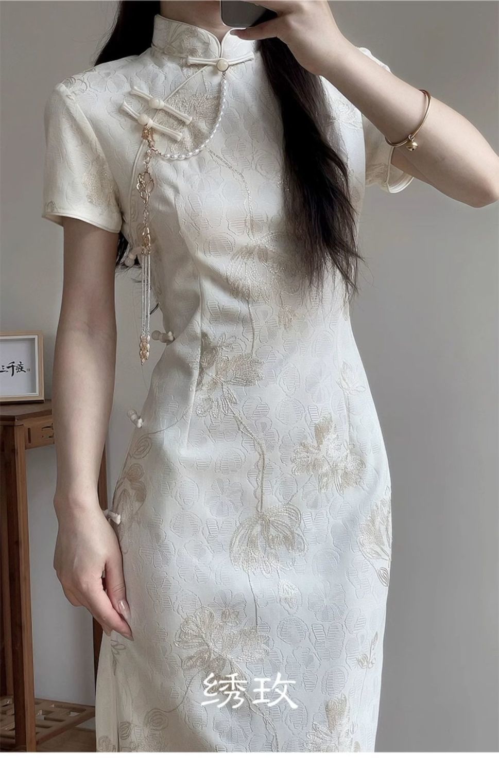 레이스 청삼 작은 2025 새로운 여름 복고풍 중국 슬림핏 우아한 매일걸 개선 젊은 스타일