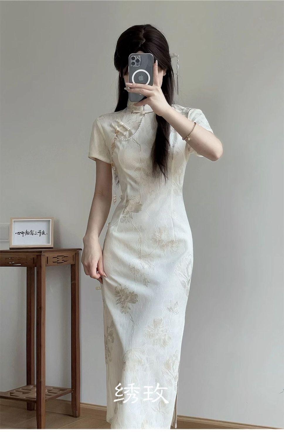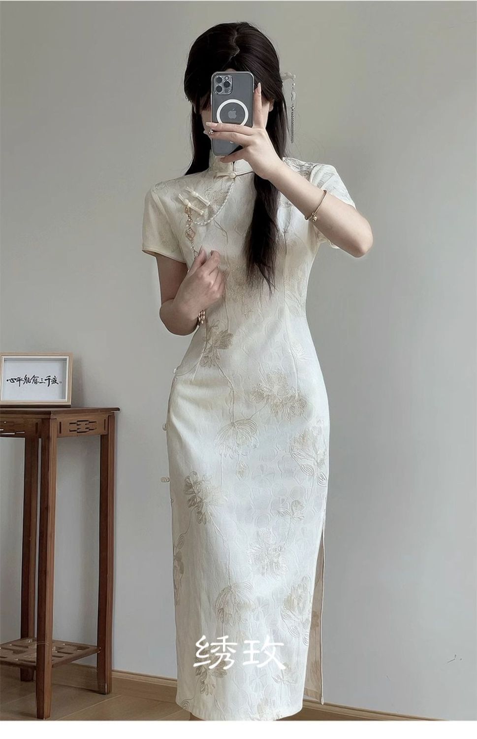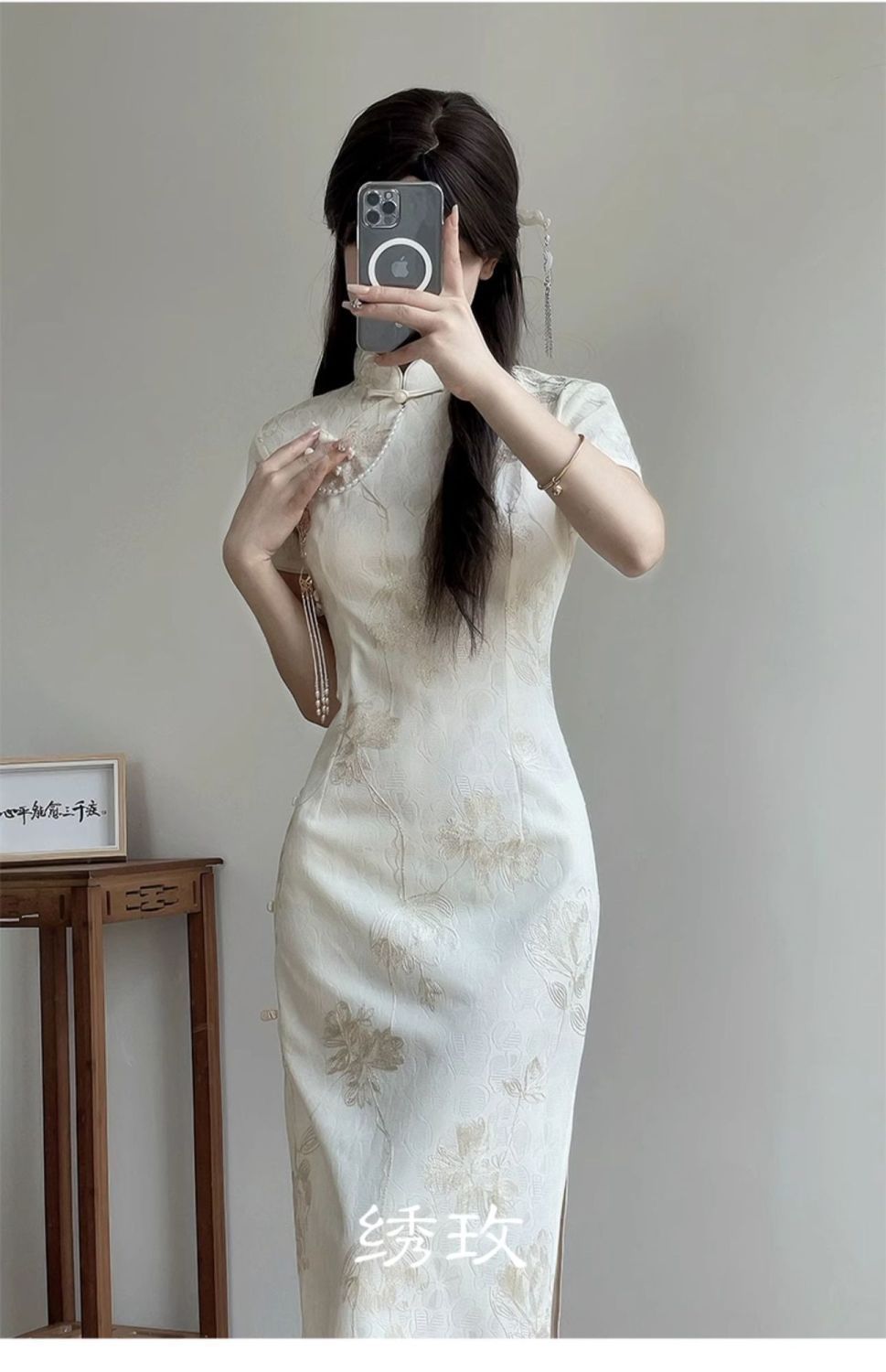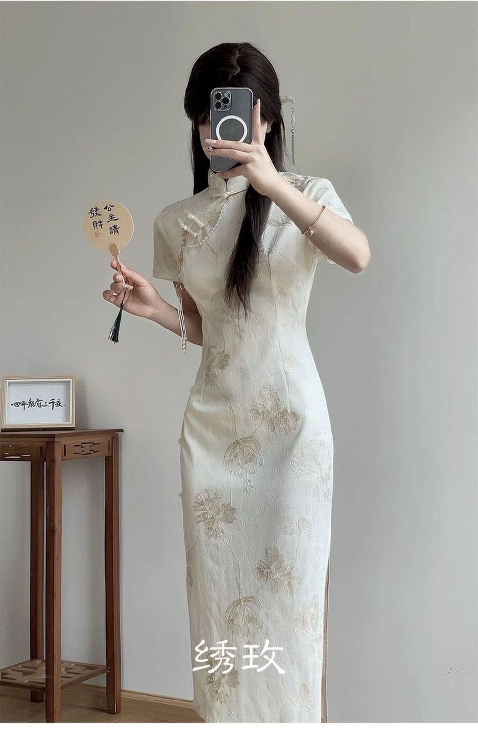 레이스 청삼 작은 2025 새로운 여름 복고풍 중국 슬림핏 우아한 매일걸 개선 젊은 스타일