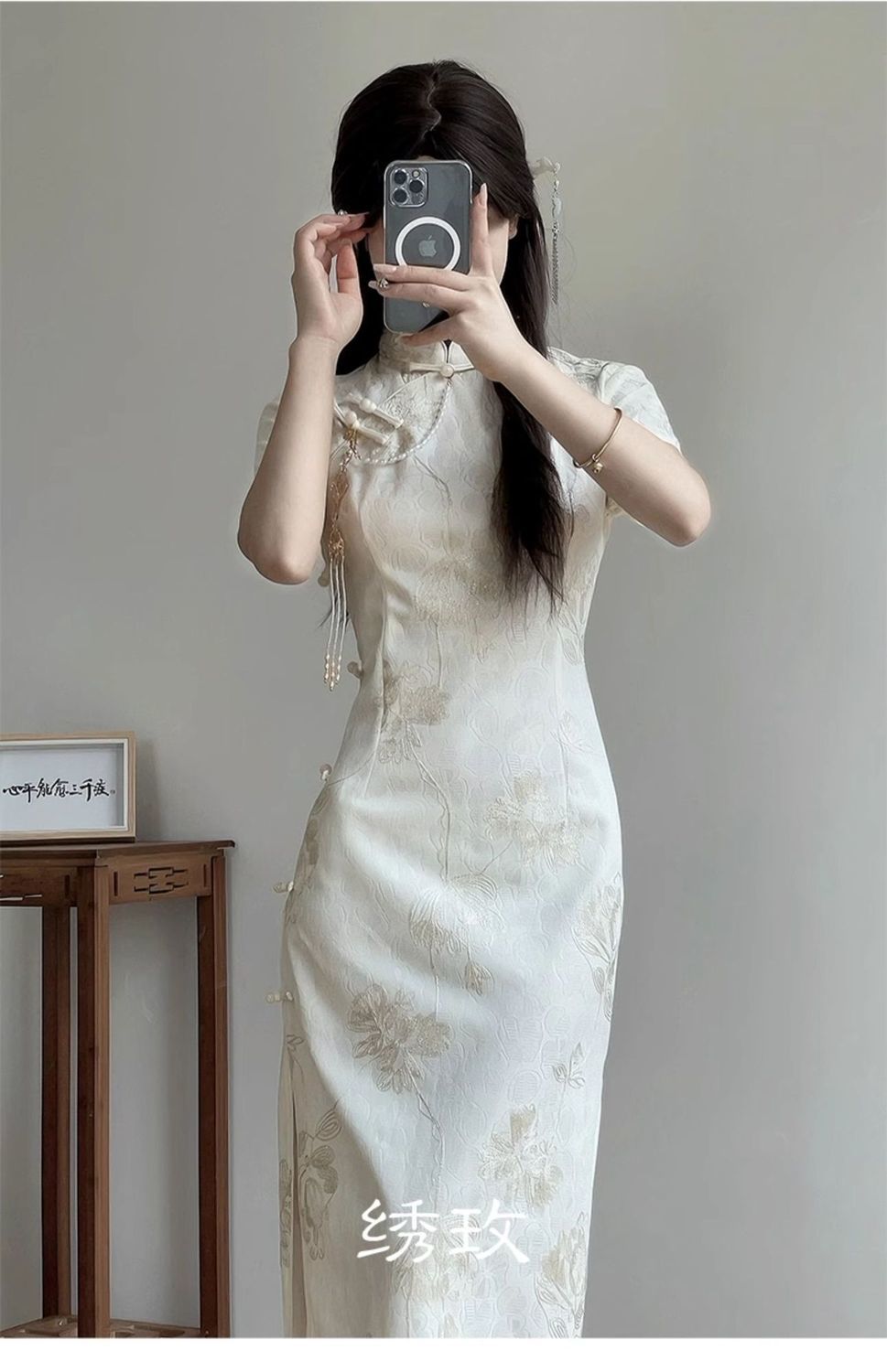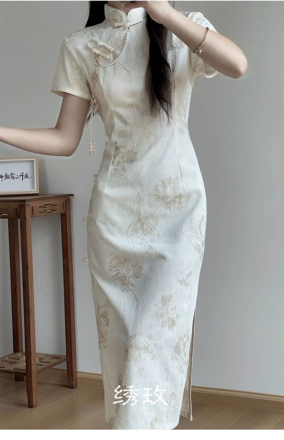 레이스 청삼 작은 2025 새로운 여름 복고풍 중국 슬림핏 우아한 매일걸 개선 젊은 스타일스토어 가기