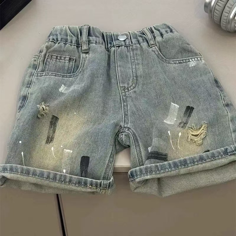 한국 아동복 남아 여름 세트 2025년 핫 아이템 패셔너블 조끼 아동 신상품 데님 반바지 그래피티 디자인