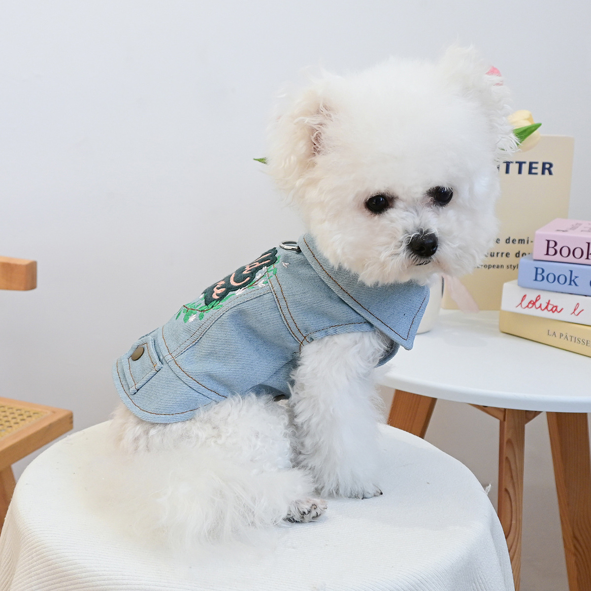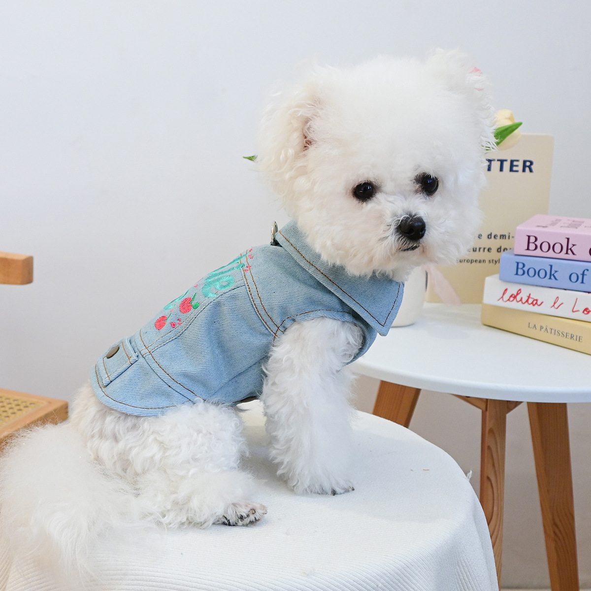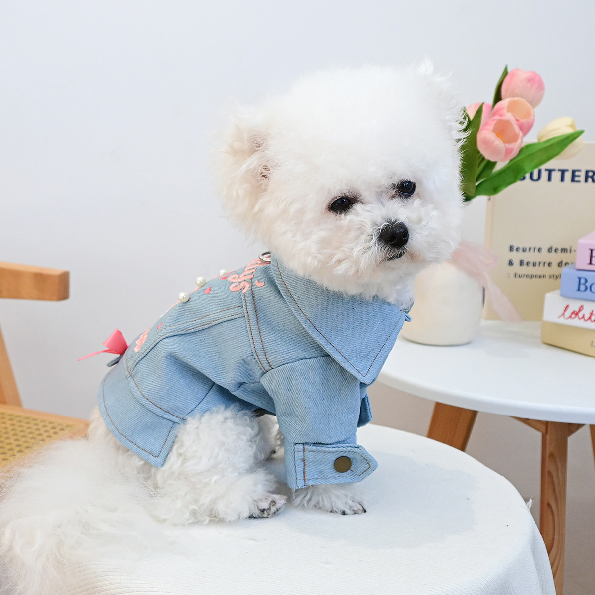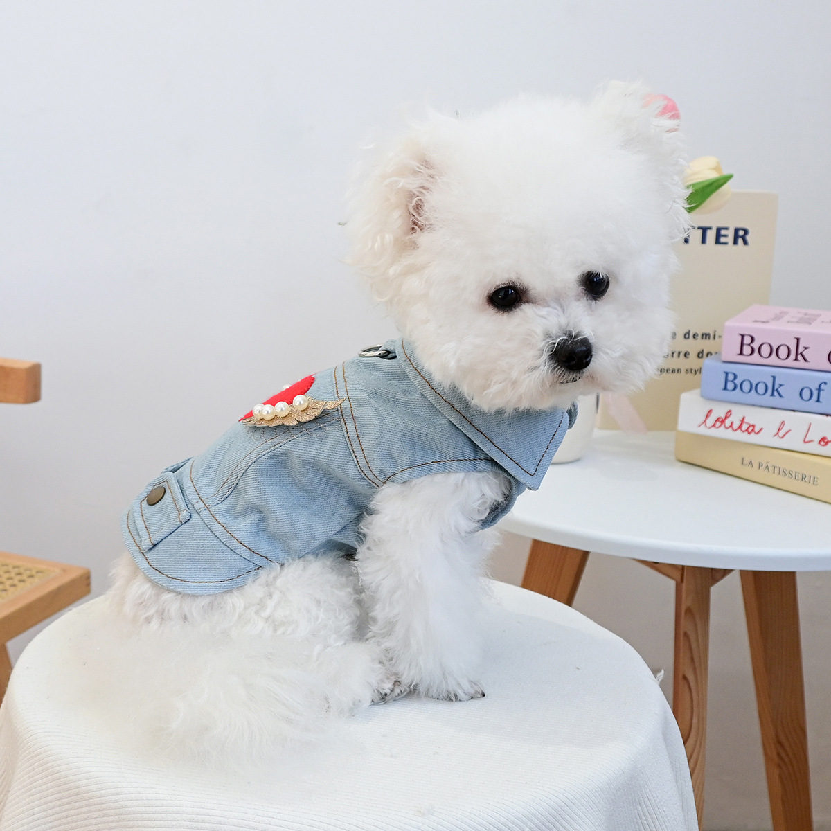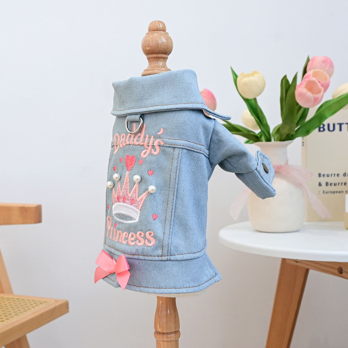 펫서클 귀여운 애완견 옷 작은 공주 데님 셔츠 트렌디 브랜드