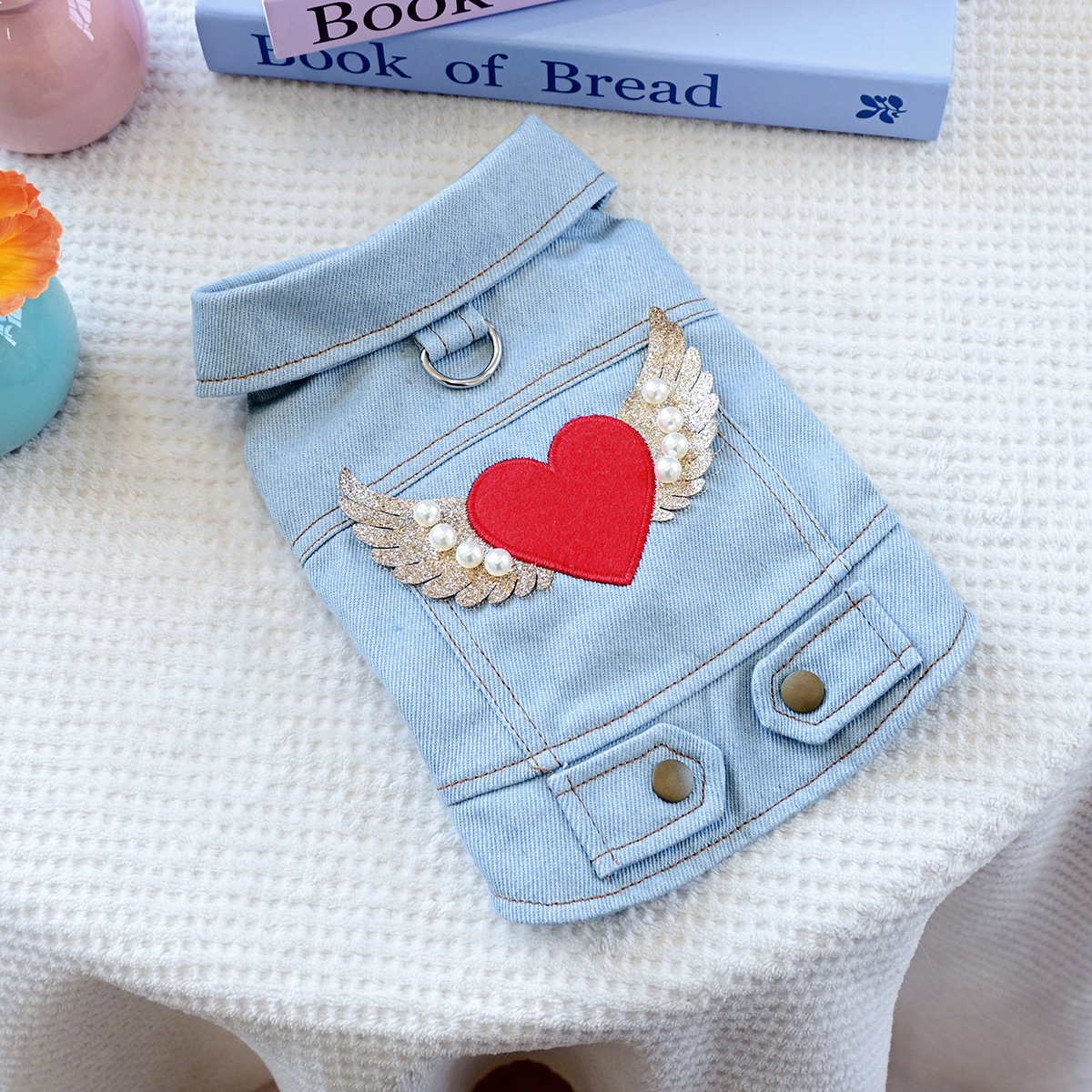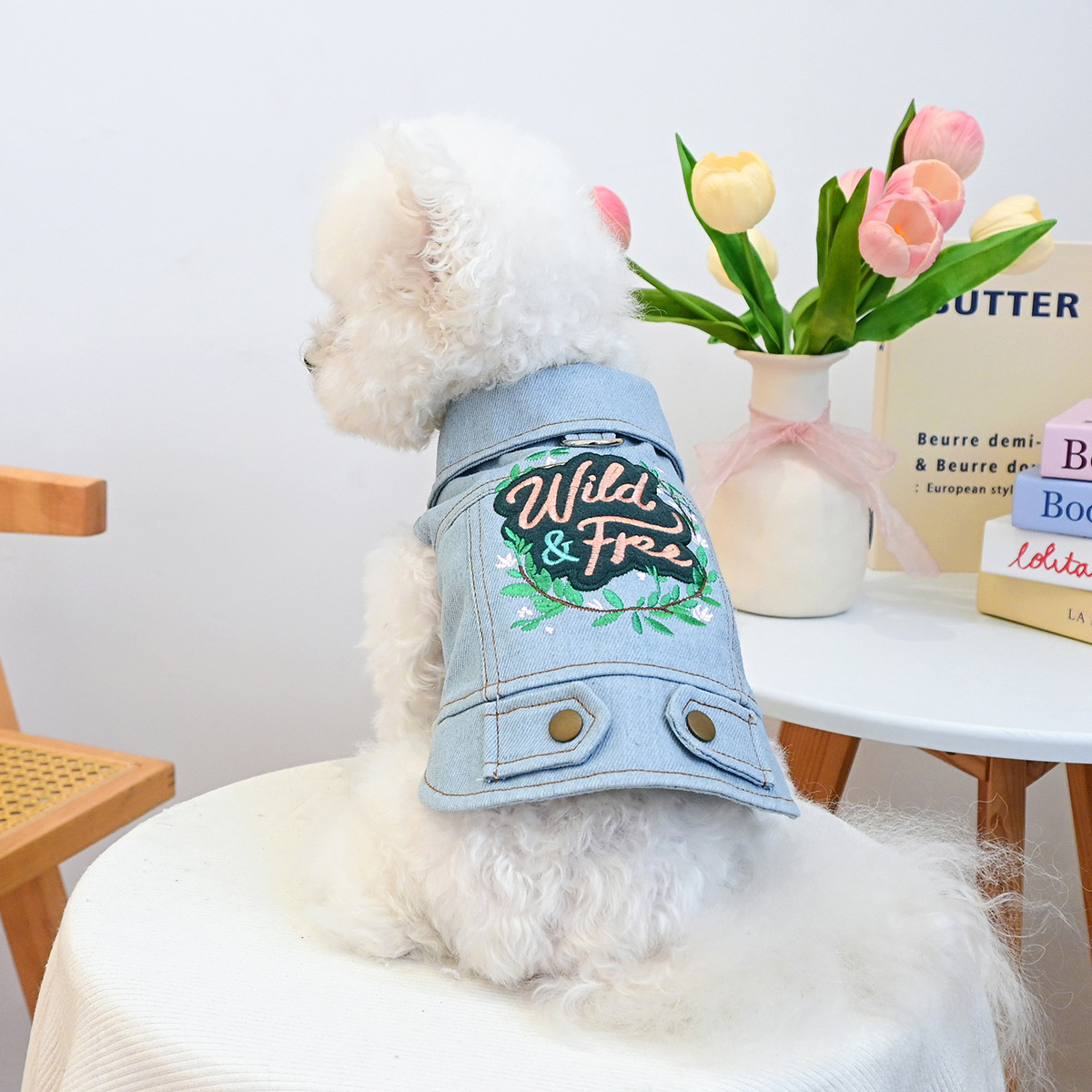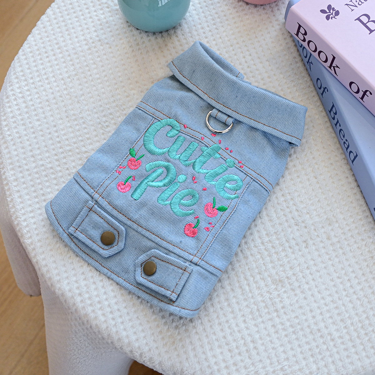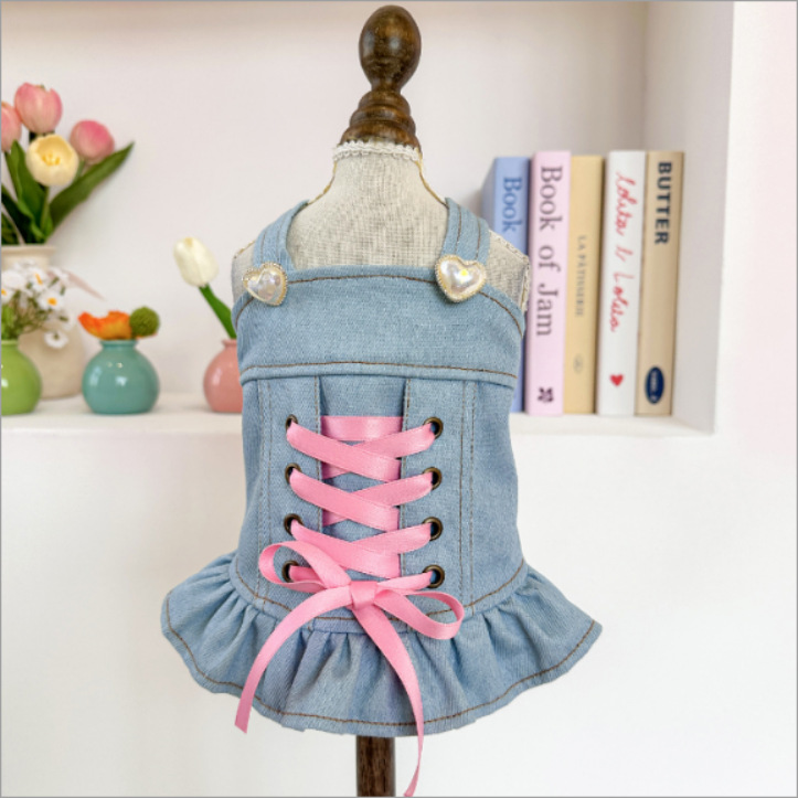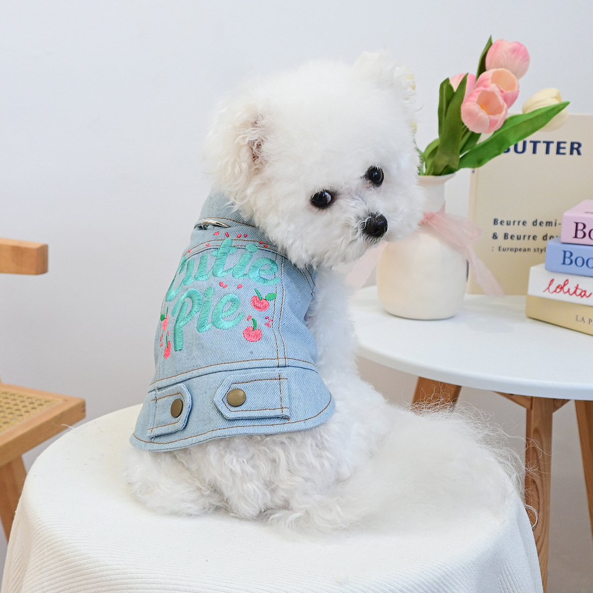 펫서클 귀여운 애완견 옷 작은 공주 데님 셔츠 트렌디 브랜드