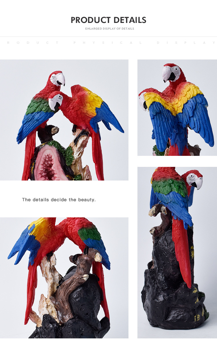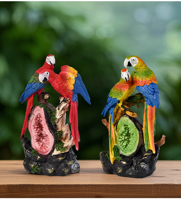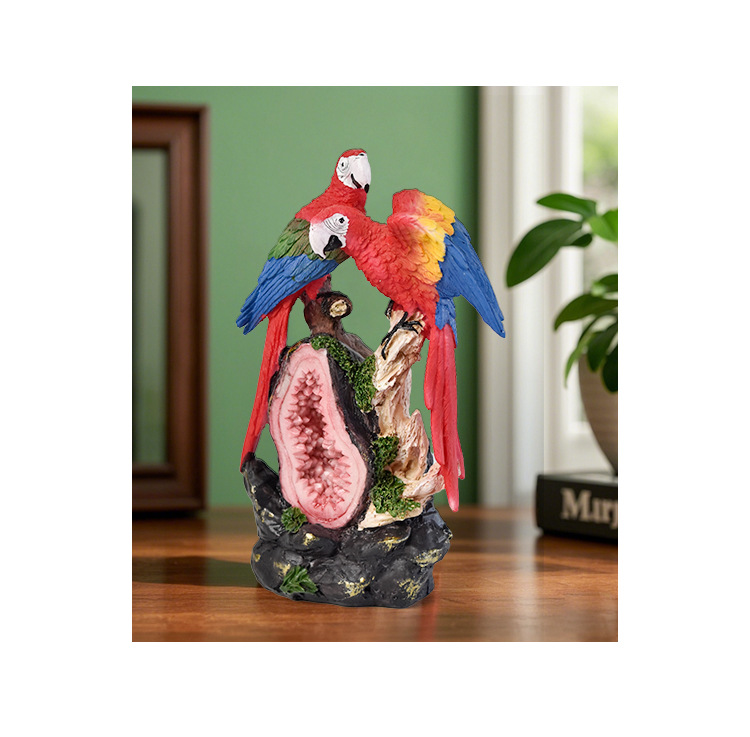 국경 간 미국 수지 앵무새 동상 장식품 홈 거실 데스크탑 커피 테이블 시뮬레이션 새 공예 장식 조각