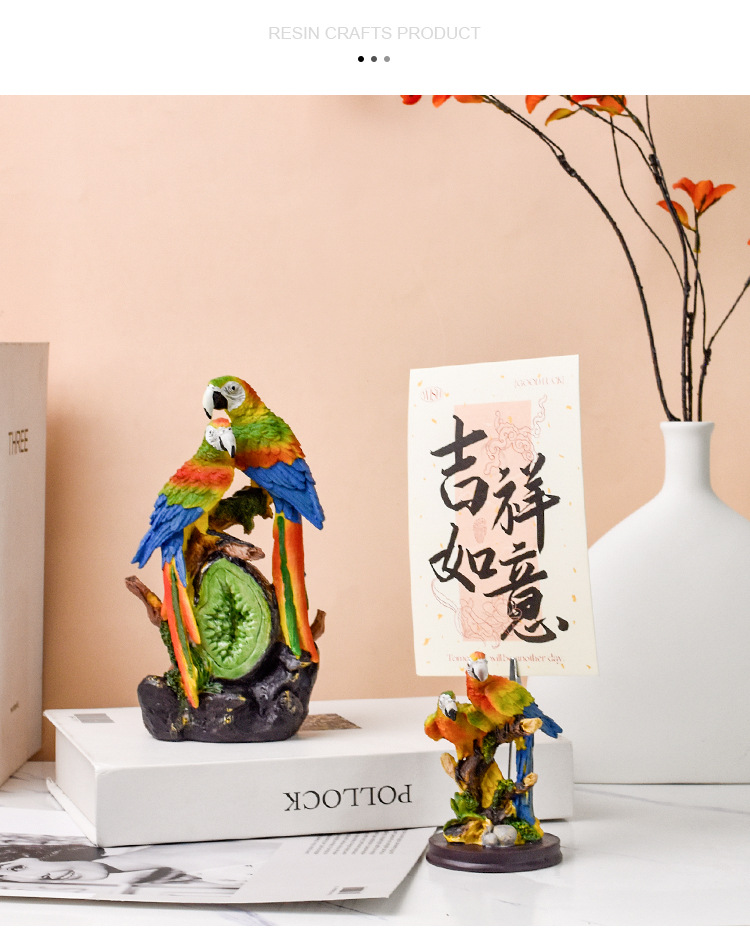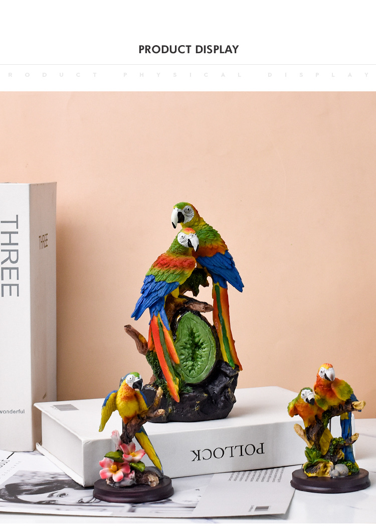 국경 간 미국 수지 앵무새 동상 장식품 홈 거실 데스크탑 커피 테이블 시뮬레이션 새 공예 장식 조각스토어 가기