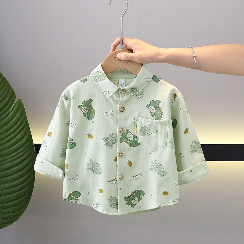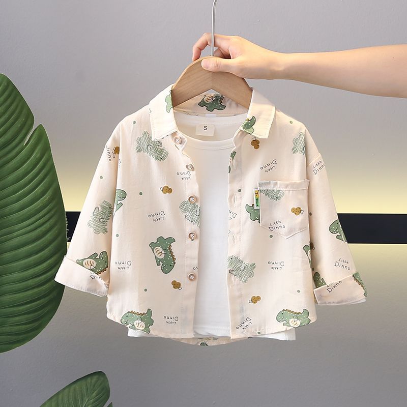 아기 순면 셔츠, 아동용 봄, 가을 멋진 긴팔 셔츠, 남아용 가을 코트, 유아 및 아동용 세련된 한국식스토어 가기