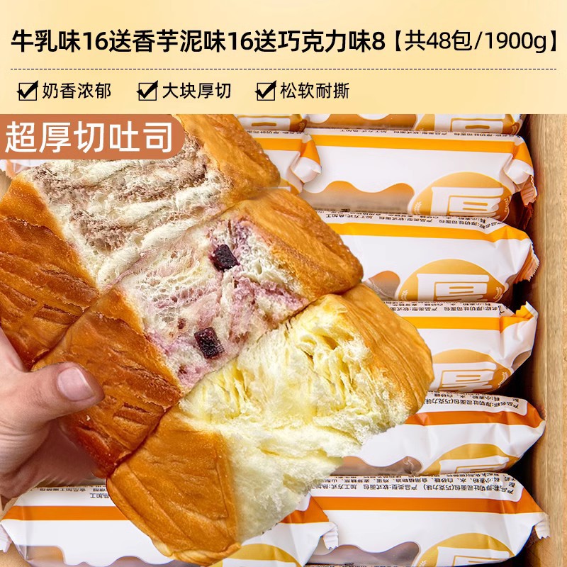 • 3가지 맛 추천! [총 24팩/1140g] 두툼하게 썬 토스트 우유맛 8팩 + 타로맛 8팩 + 초콜릿맛 8팩