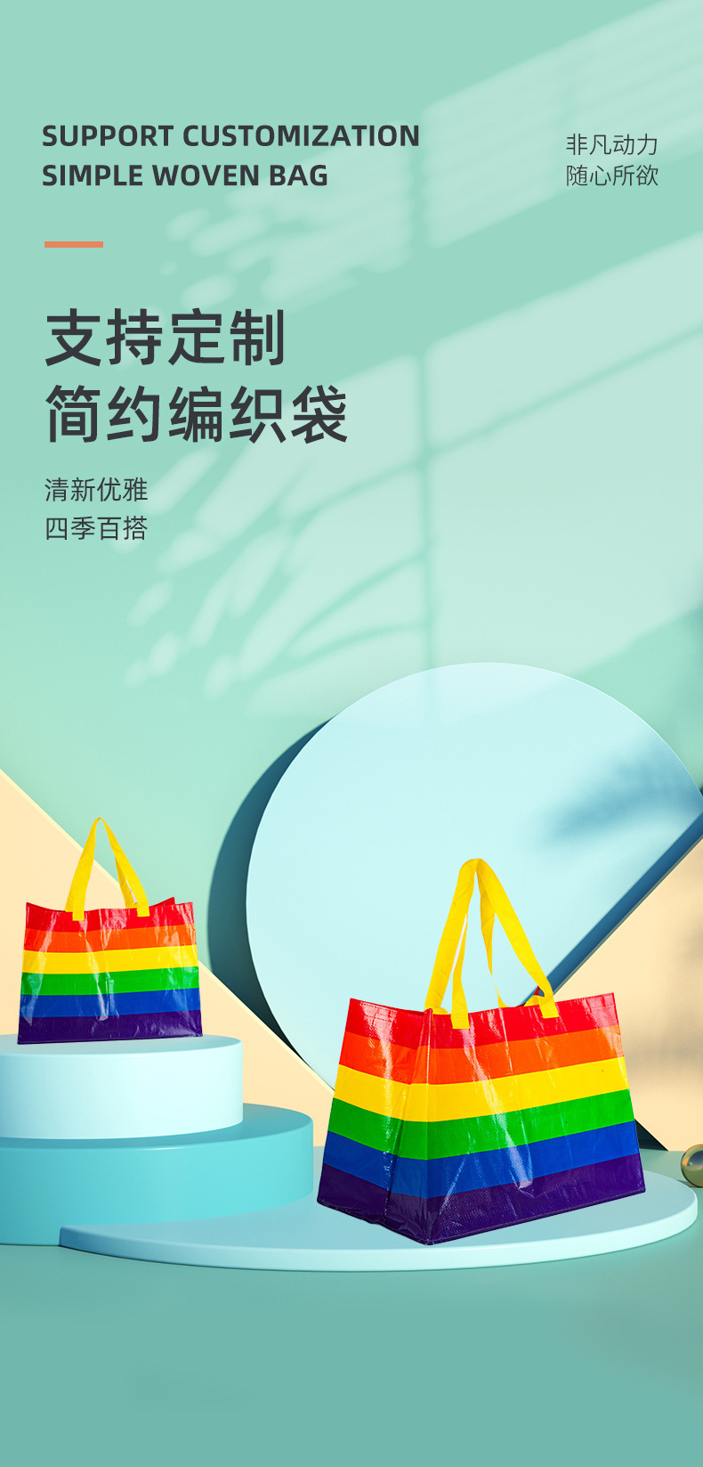 직접 공급되는 제조업체의 짠 가방 PP 소재 무지개 염색 고급 쇼핑 핸드백 가정용 정리 및 보관 가방스토어 가기