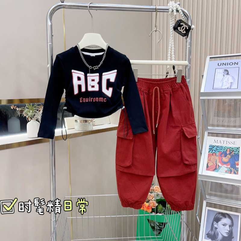 여아 정장 봄 2025 새로운 아동용 긴팔 티셔츠 작업복 투피스 세트 여아 봄 옷은 세련되고 패셔너블합니다.