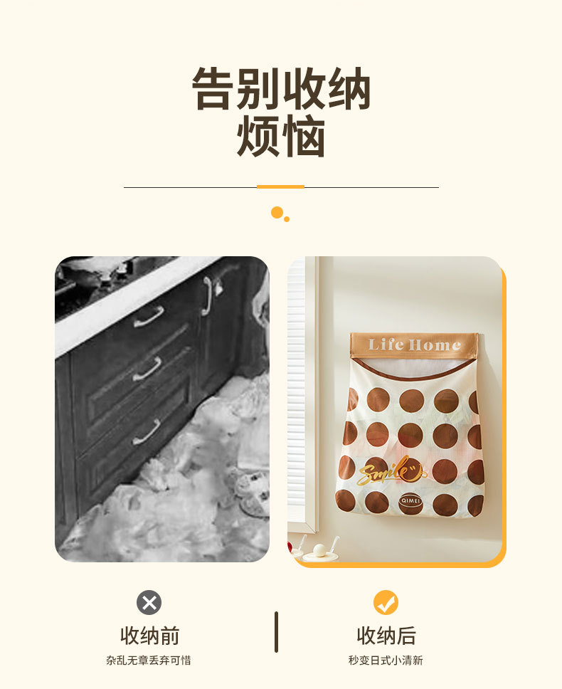 벽걸이 형 대용량 저장 가방 주방 쓰레기 봉투 저장 유물 비닐 봉투 보관 후크 및 루프 그물스토어 가기