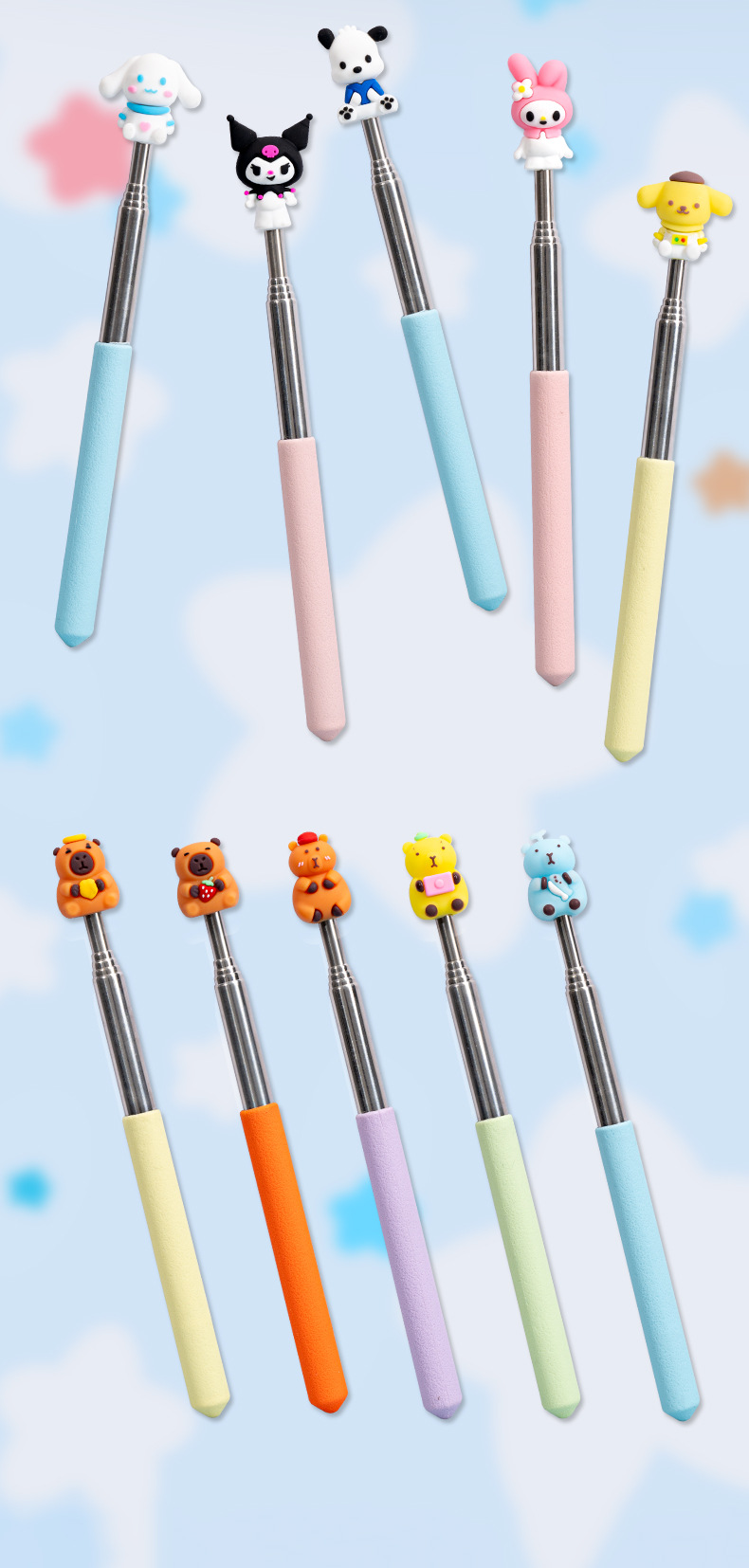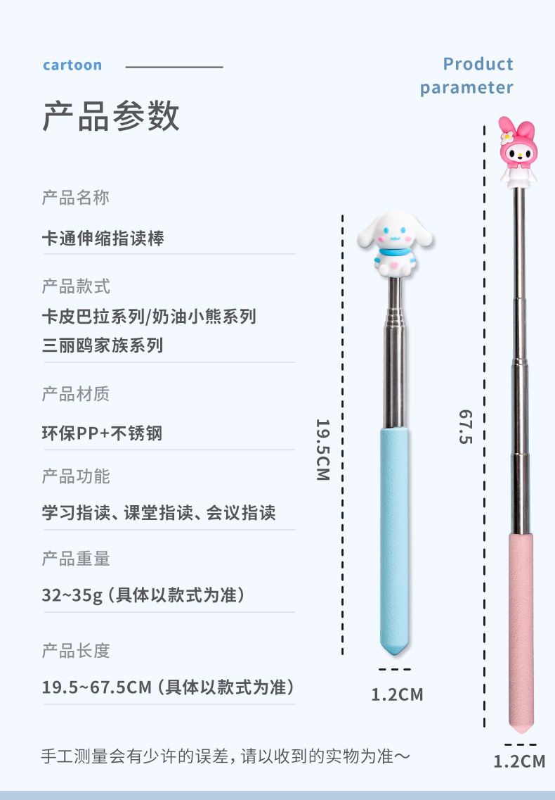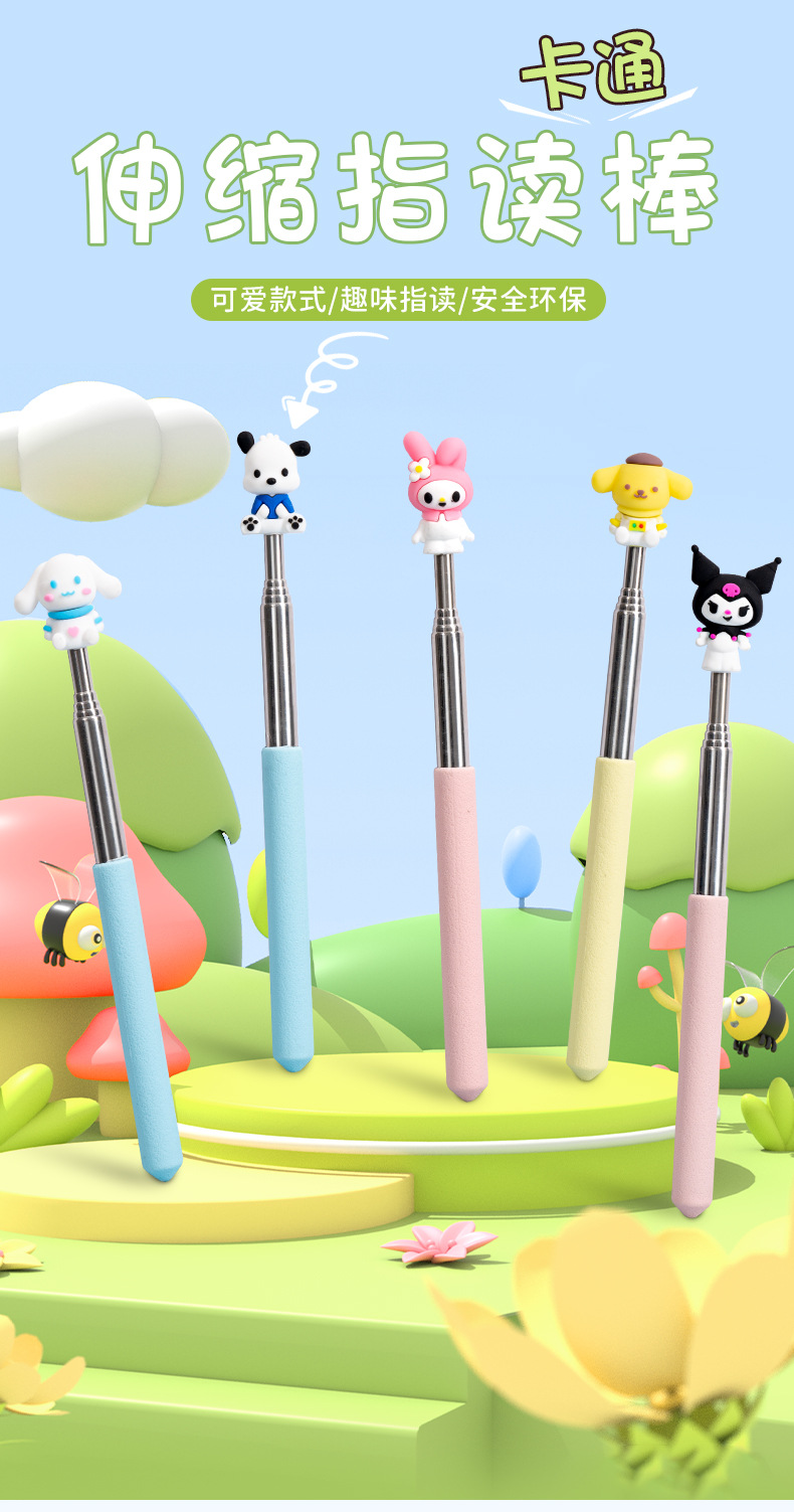 새로운 Ins 어린이 만화 귀여운 부드러운 접착제 손가락 읽기 스틱 교실 교사 교육 지시 스틱 개폐식 지휘봉