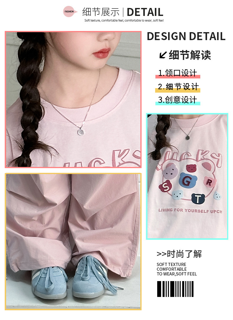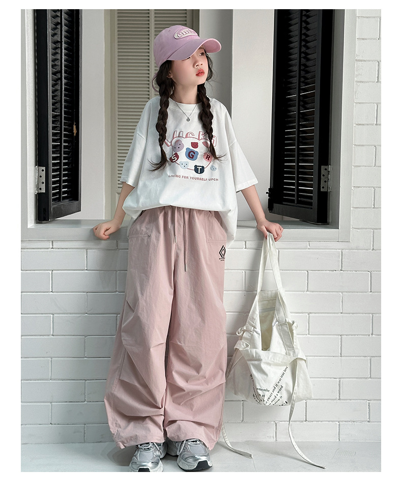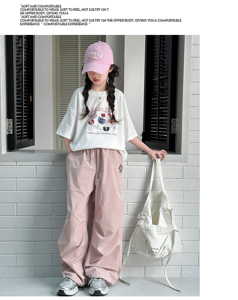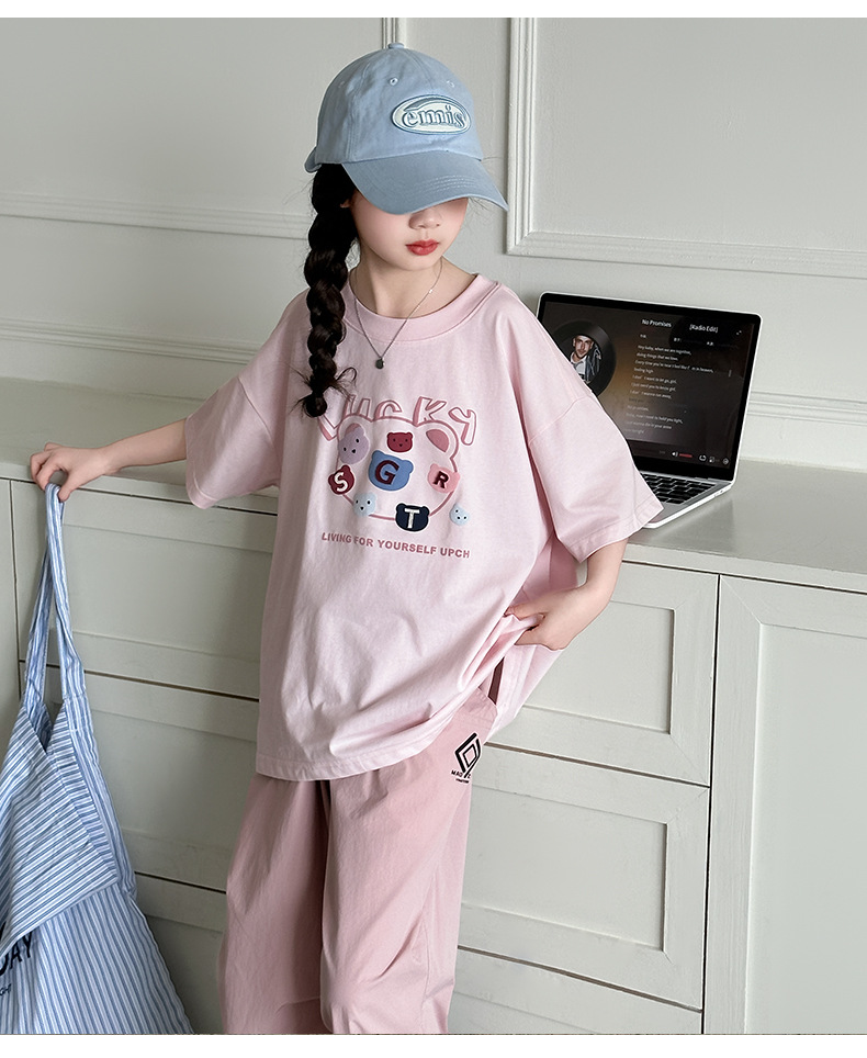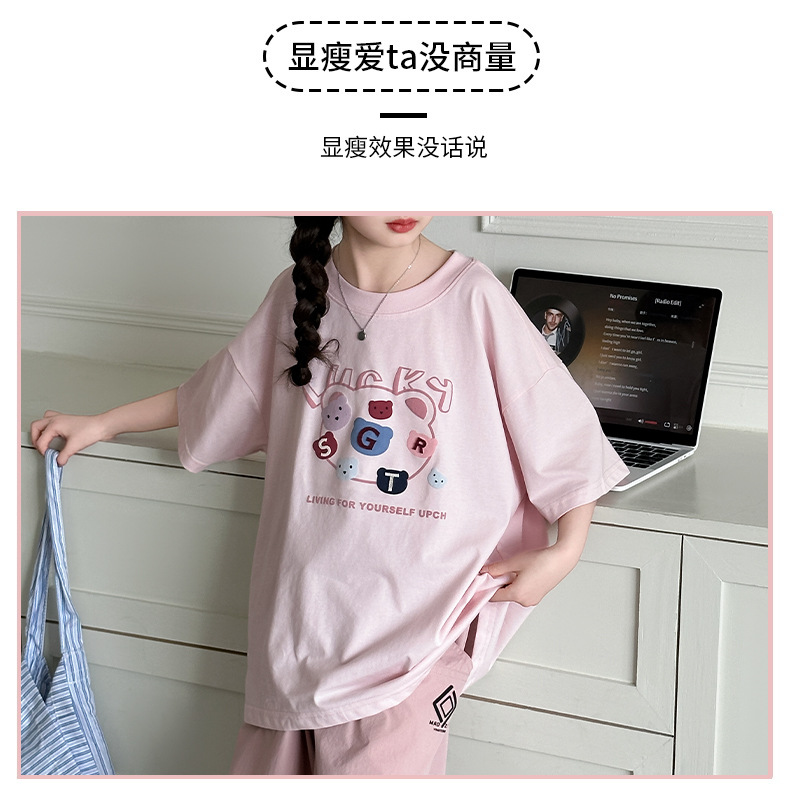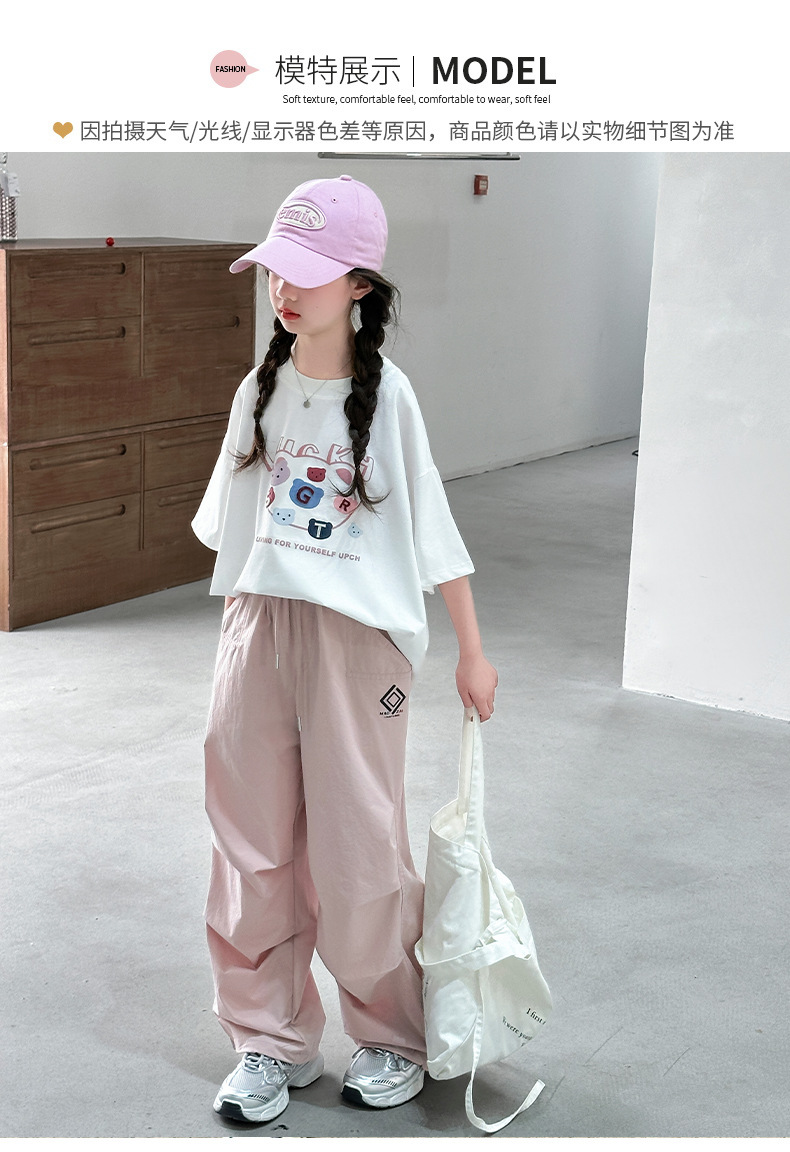 소녀의 봄과 여름 작업복 세트 어린이 패션 느슨한 반팔 와이드 레그 바지 프라이드 스트리트 투피스 세트 얇은 여름 패션스토어 가기