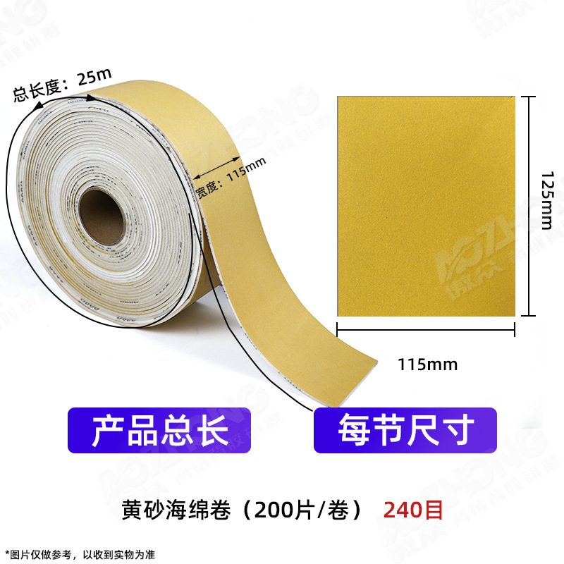 스펀지 사포 롤 115*25 손으로 찢을 수 있는 절단점 연마 오래된 페인트 연마 노란색 모래 스펀지 롤 대량 구매스토어 가기