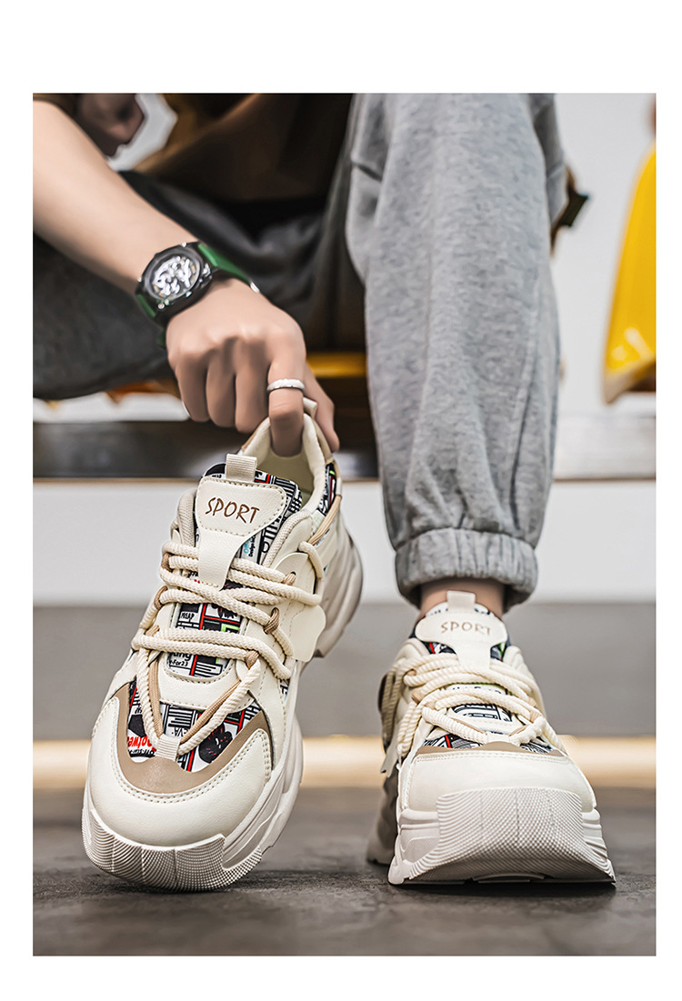 남성 신발 봄 2025 새로운 통기성 흰색 신발 남성 유행 다목적 두꺼운 밑창 운동화 남성용 캐주얼 아빠 신발스토어 가기