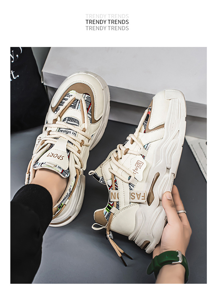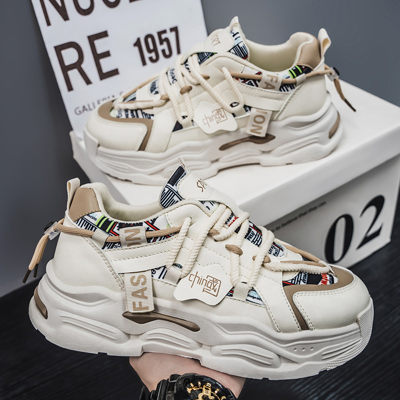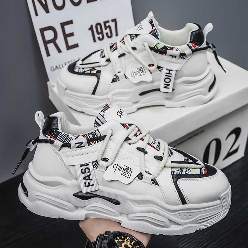 남성 신발 봄 2025 새로운 통기성 흰색 신발 남성 유행 다목적 두꺼운 밑창 운동화 남성용 캐주얼 아빠 신발