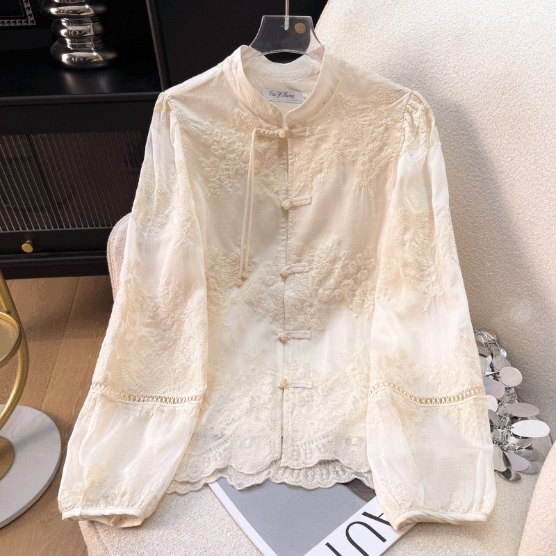 새로운 중국 스타일 칼라 셔츠 여성용 하이 엔드 라이트 럭셔리 2025 새로운 이른 봄 의류 웨스턴 스타일 셔츠 국가 스타일 자수 탑스토어 가기