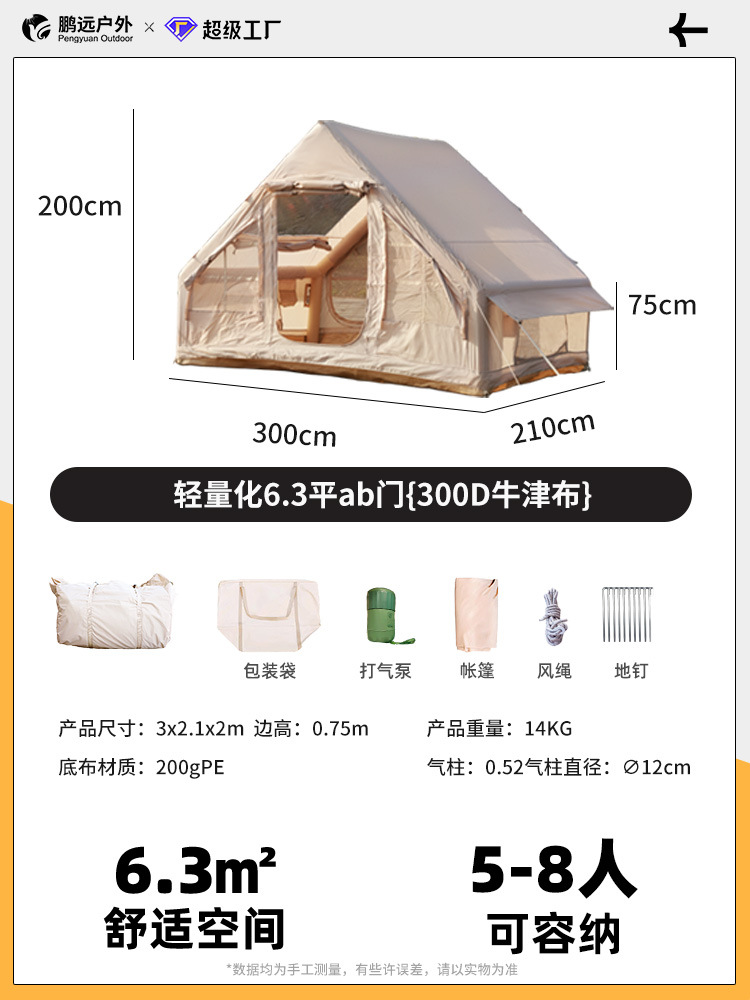 Pengyuan 가정용 휴대용 6.3 평면 자동 풍선 텐트 야외 아기 그룹 건설 여행 캠핑 텐트