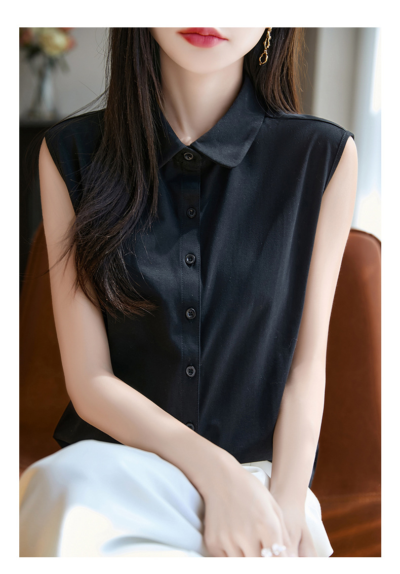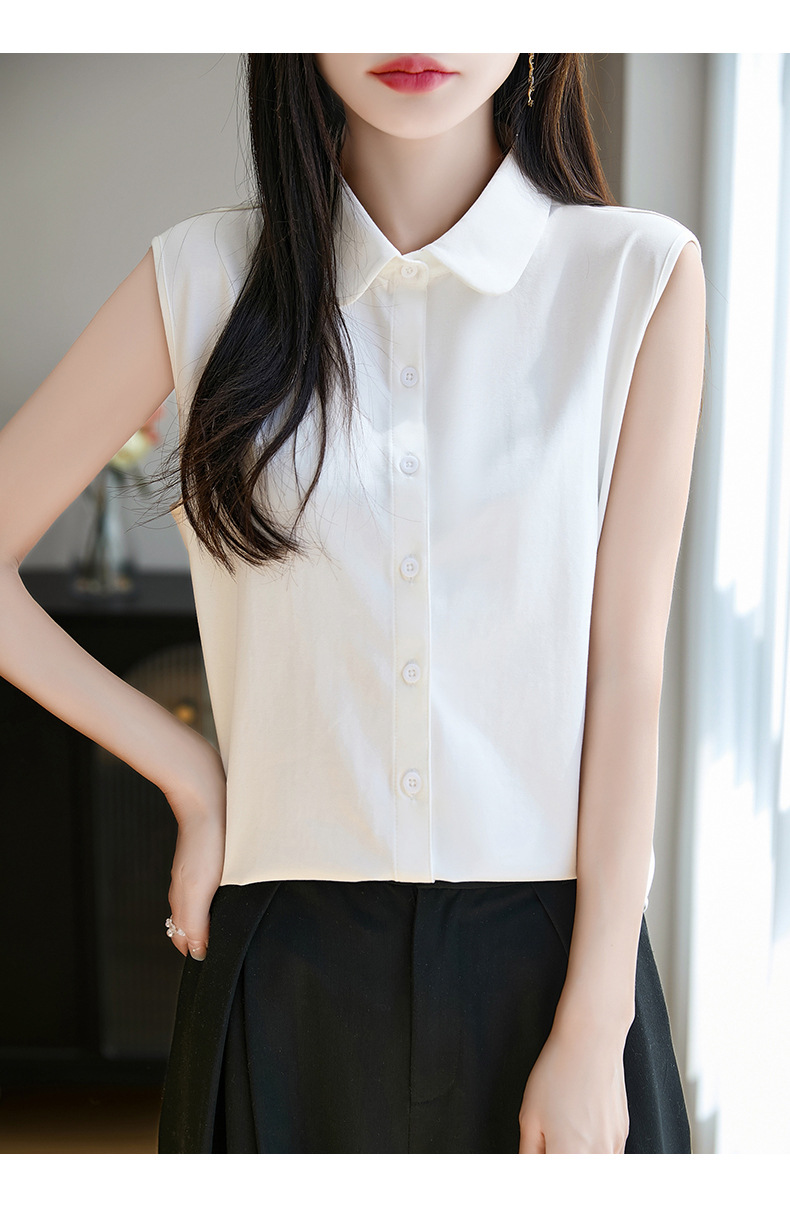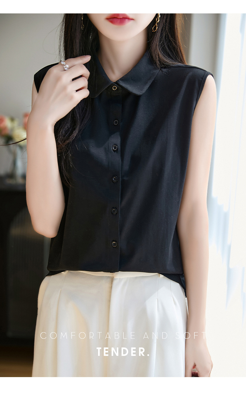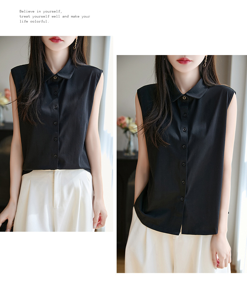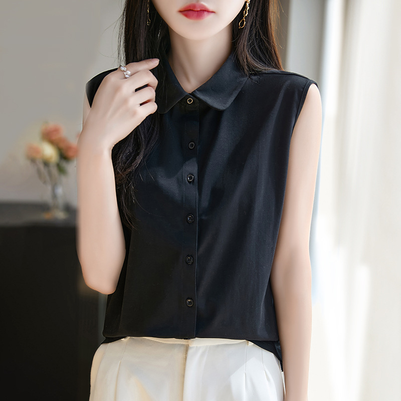 2025년 여름 POIO 칼라 셔츠, 패셔너블한 솔리드 컬러 민소매 이너웨어, 여성스럽고 우아하며 다재다능한 디자인스토어 가기