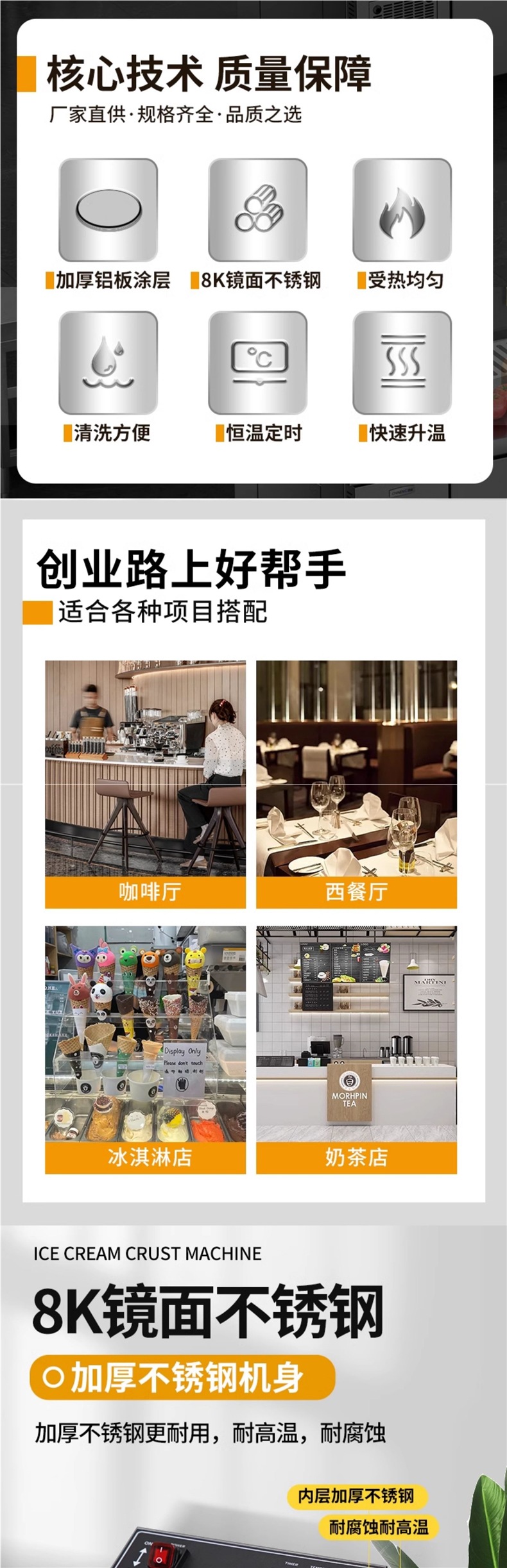 • [라이트 럭셔리 모델] 전기 가열 원형 아이스크림 크러스트 기계