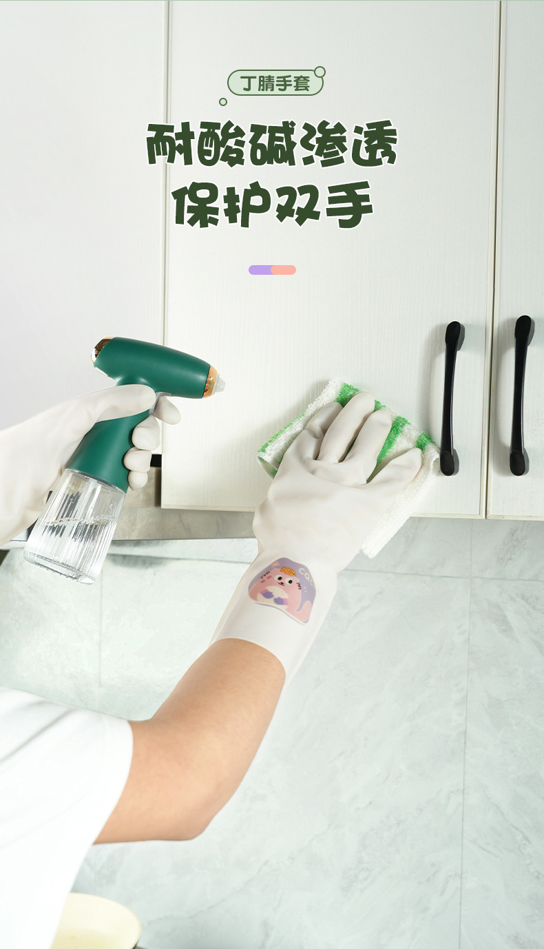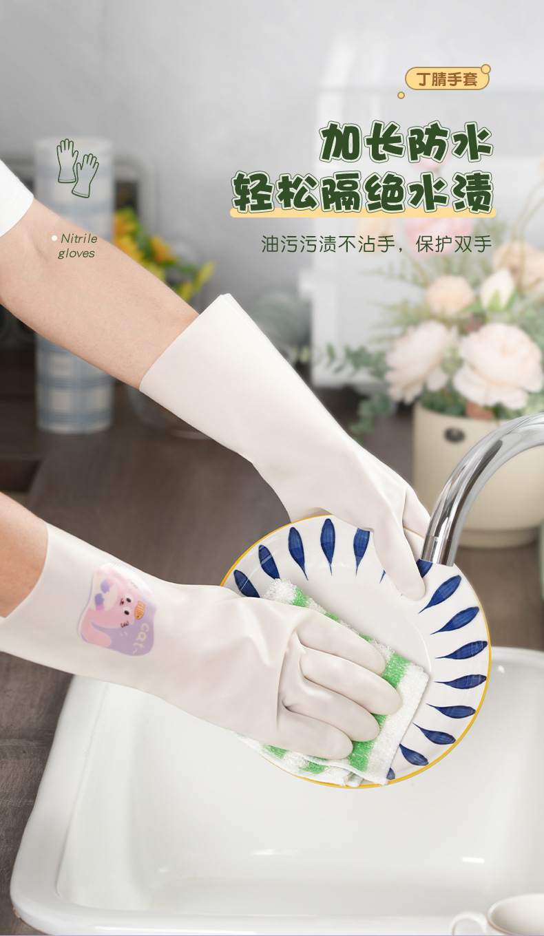 매우 길고 내구성이 뛰어난 일회용 식기 세척 장갑 니트릴 두꺼운 내유성 고무 노동 보호 가사 주방 청소 여성용 핸드 스티커