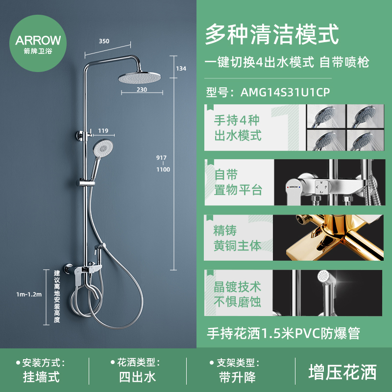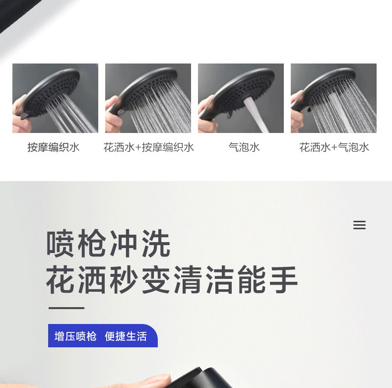 • βγγγβγ 매장 동일 스타일 스프레이 건 4가지 기능 스프레이 건 라이트 로드 리프팅 부스터 샤워 헤드 AMG14S31U1CPβγγγβγ