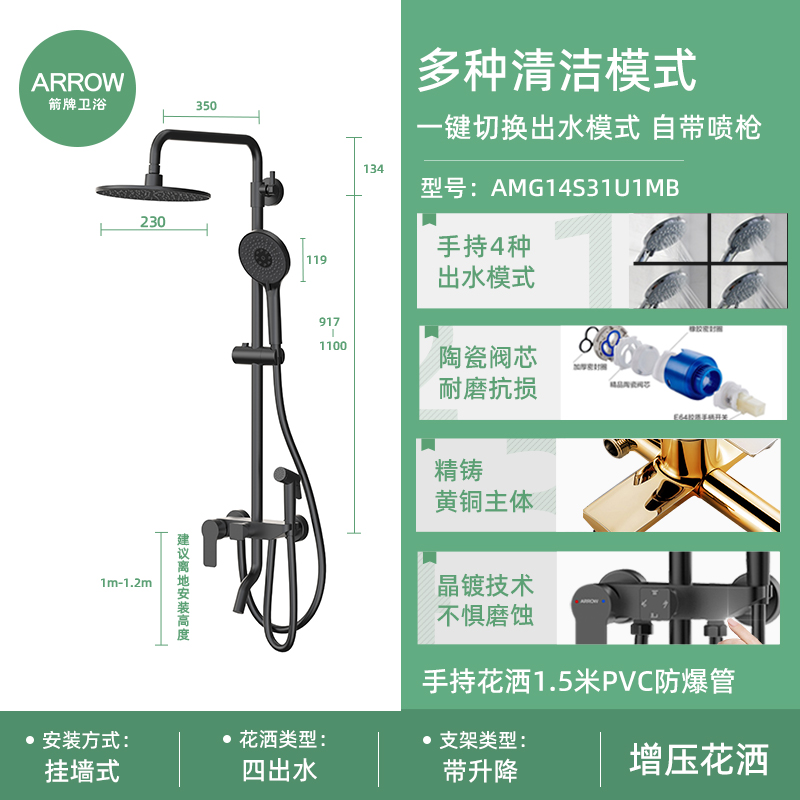 • βγγγβγ 매장 동일 스타일 스프레이 건 4가지 기능 레버 리프트 슈퍼차지 샤워 헤드 AMG14S31U1MBβγγγβγ