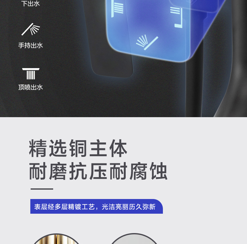 • βγγγβγ 매장 동일 총 색상 9inch 자이언트 스크린 탑 스프레이 3 기능 라이트 스템 리프팅 슈퍼차지 샤워 헤드 AF33156GGPβγγγβγ