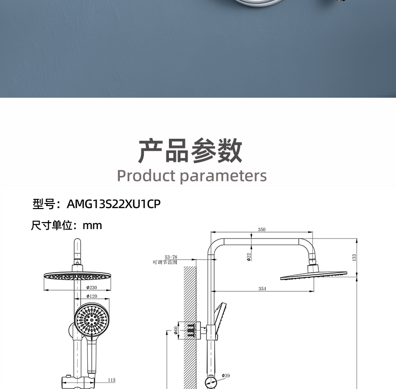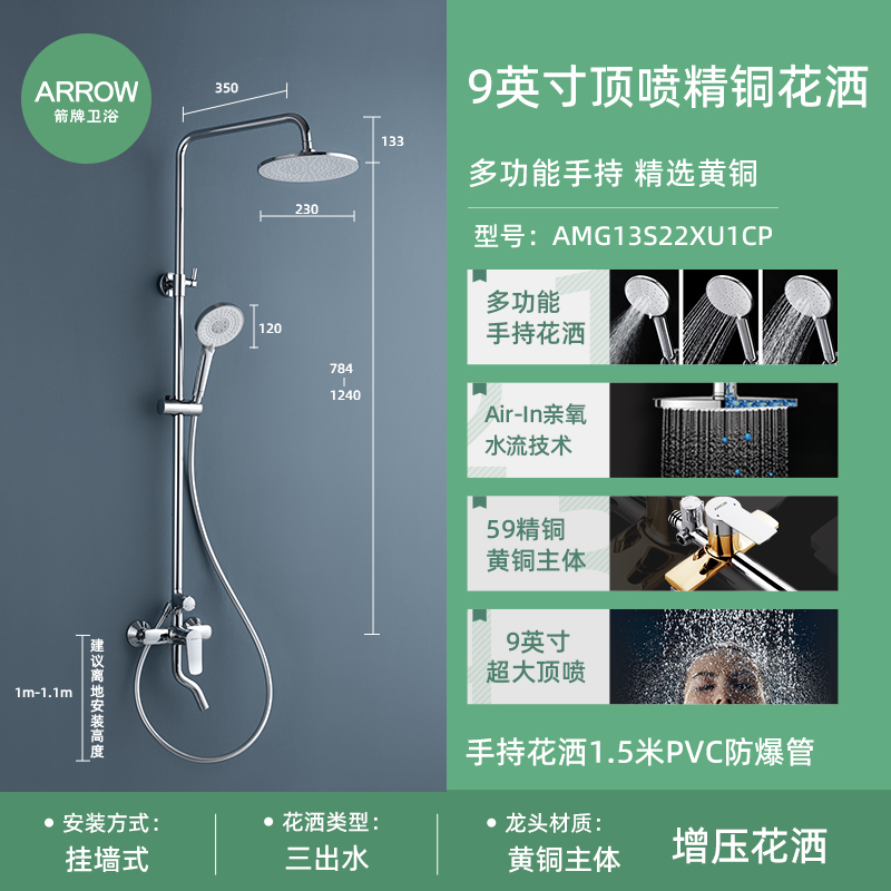 • βγγγβγ 매장 동일 모델 9inch 대형 탑 스프레이 3기능 라이트 스템 리프팅 슈퍼차지 샤워 헤드 AMG13S22XU1CPβγγγβγ