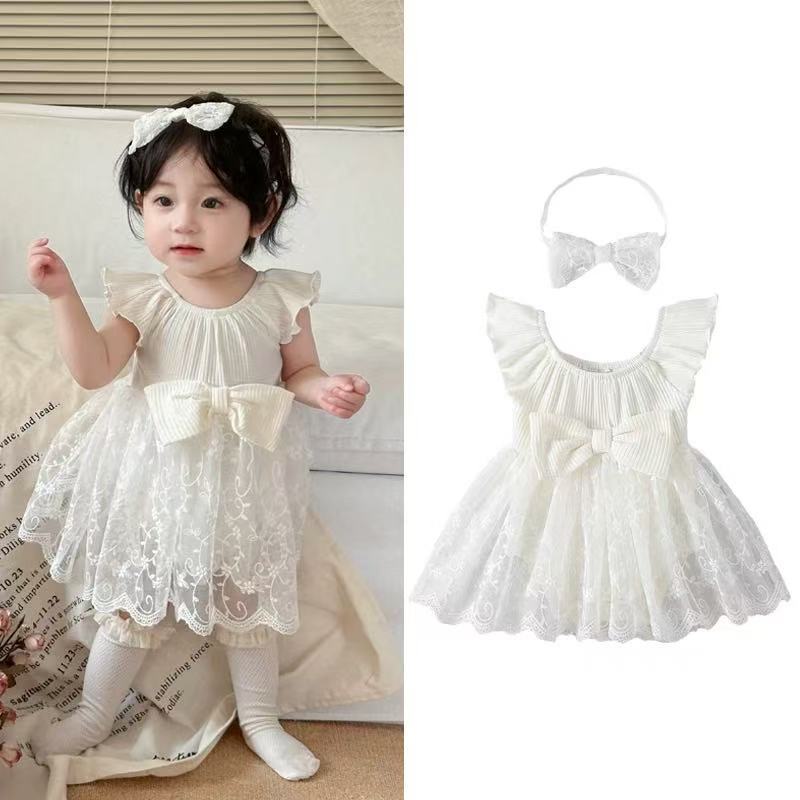 아기 한 살짜리 드레스 새로운 보름달 드레스 아기 소녀 패션 메쉬 플라잉 슬리브 여름 공주 원피스 드레스 거즈 스커트