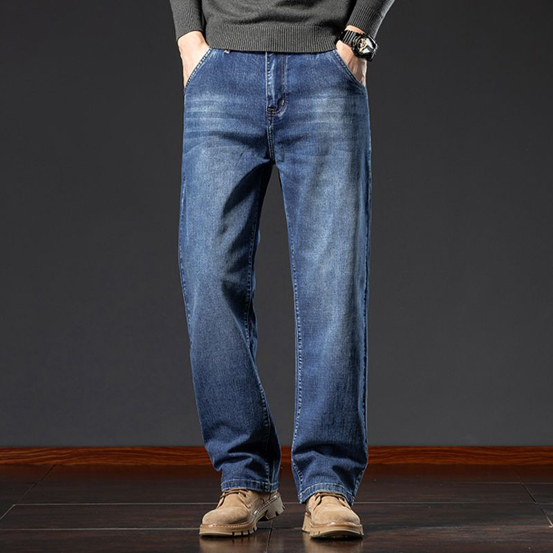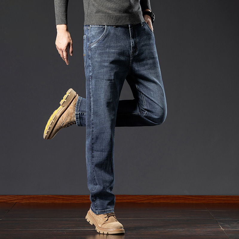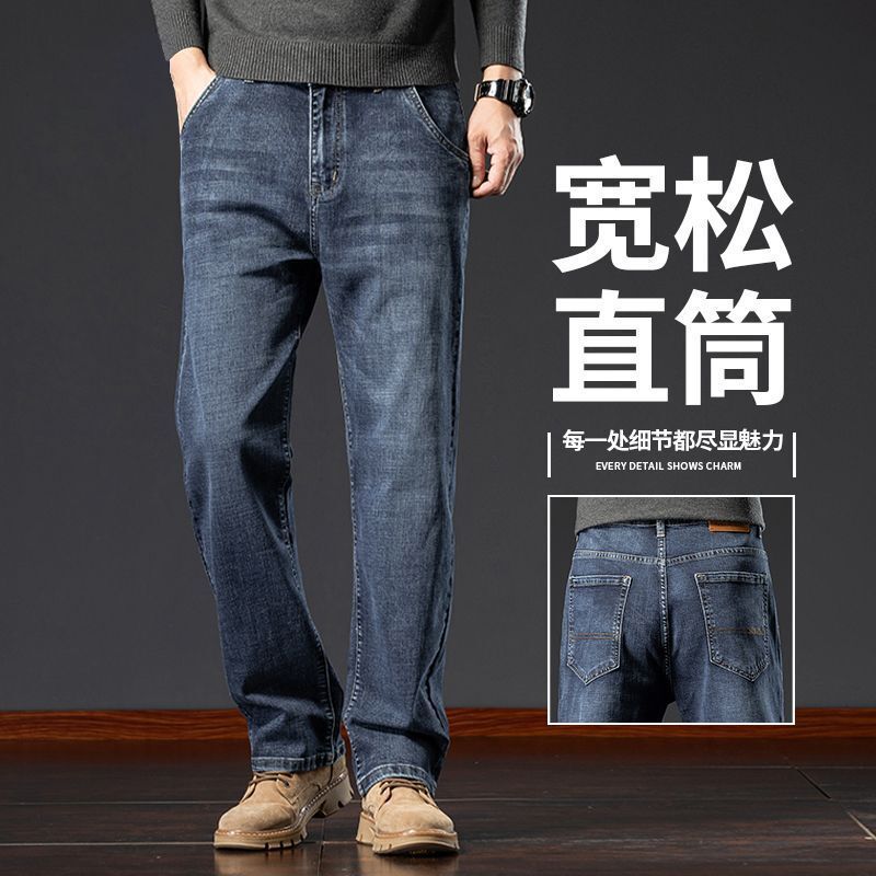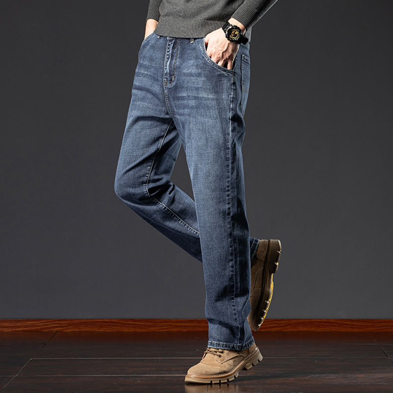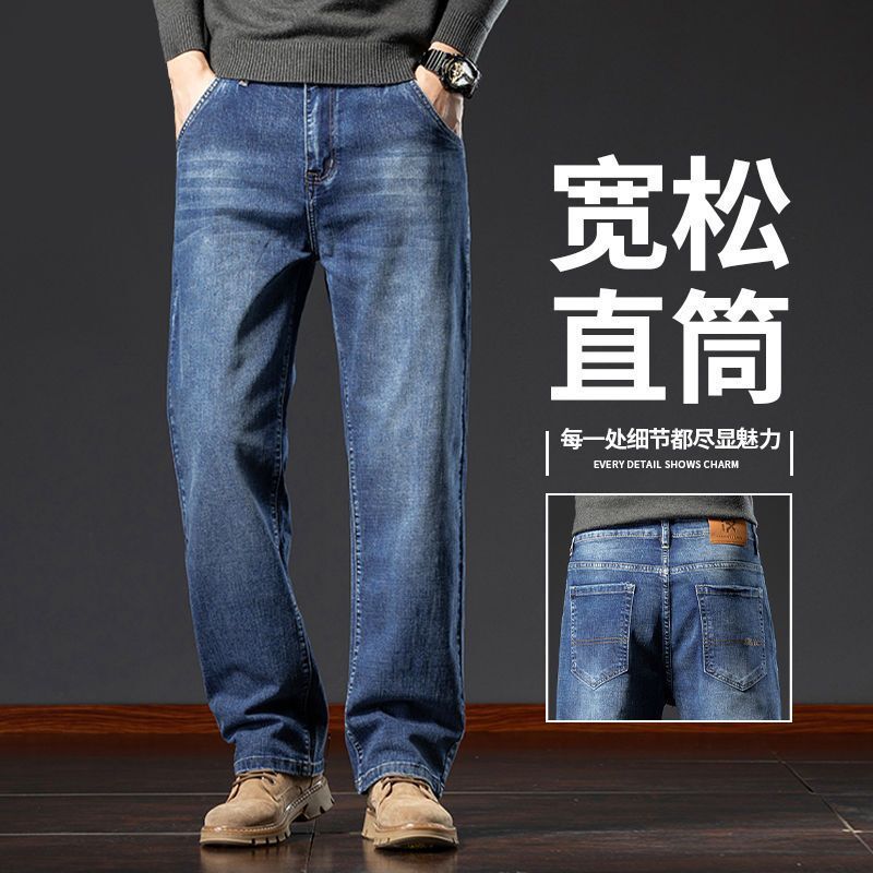 봄, 가을 트렌드 남성용 레귤러 워싱 미드 웨이스트 청소년 마이크로 엘라스틱 대형 하이 엔드 가을, 겨울 스트레이트 루즈 청바지스토어 가기
