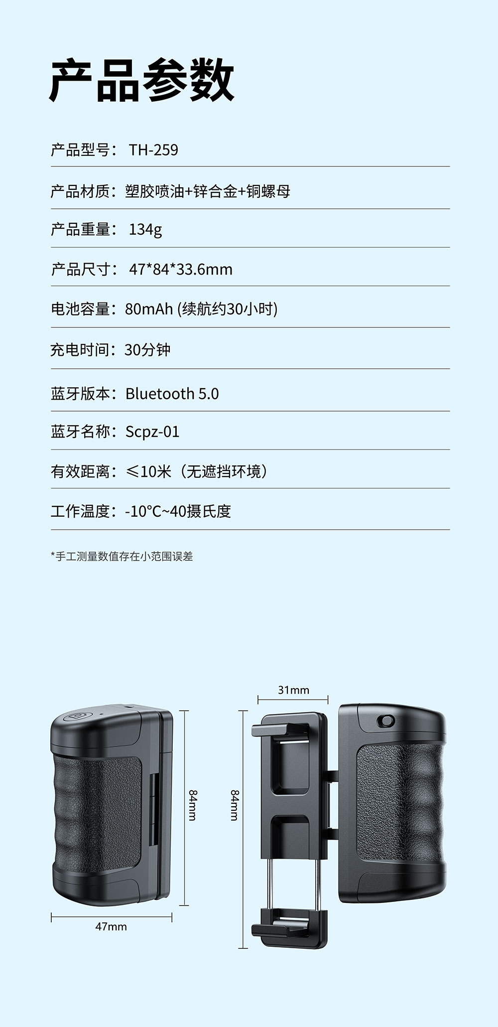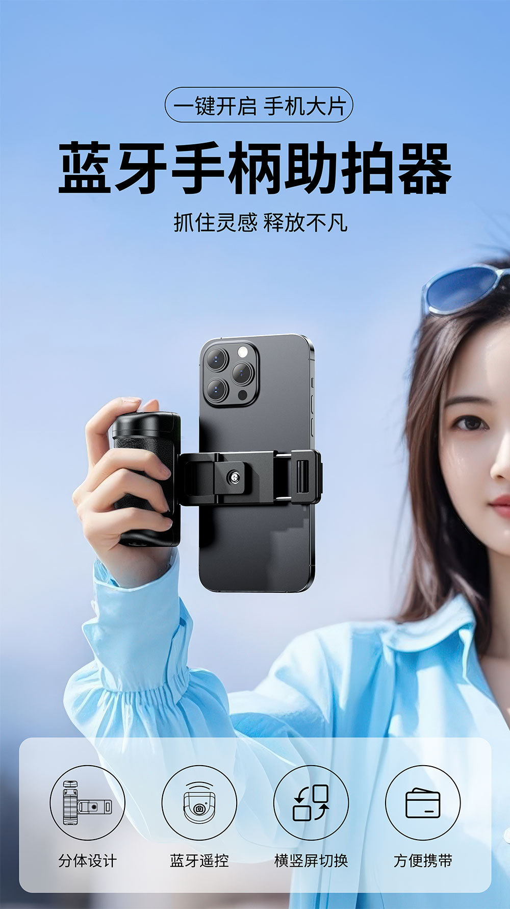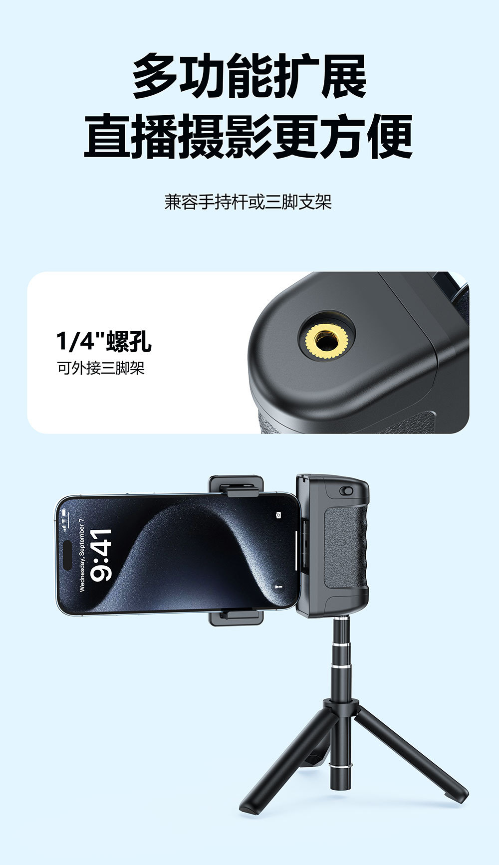 • 미니 촬영 보조 장치 + 충전 블루투스 리모콘 - 삼각대 없음 [블랙]