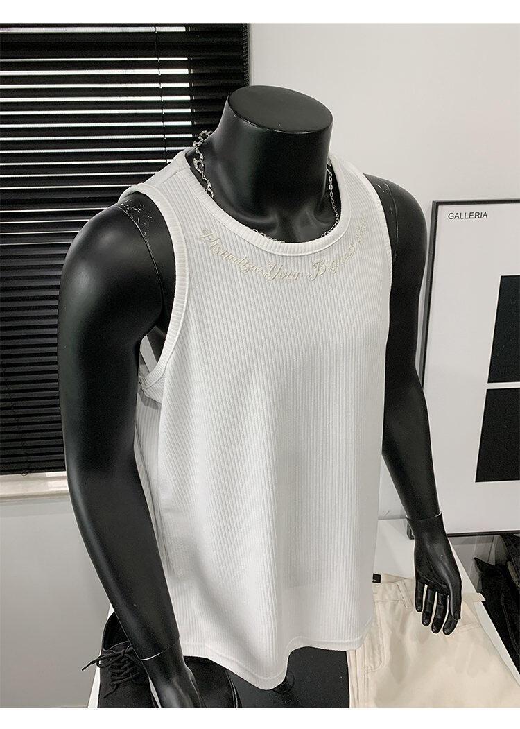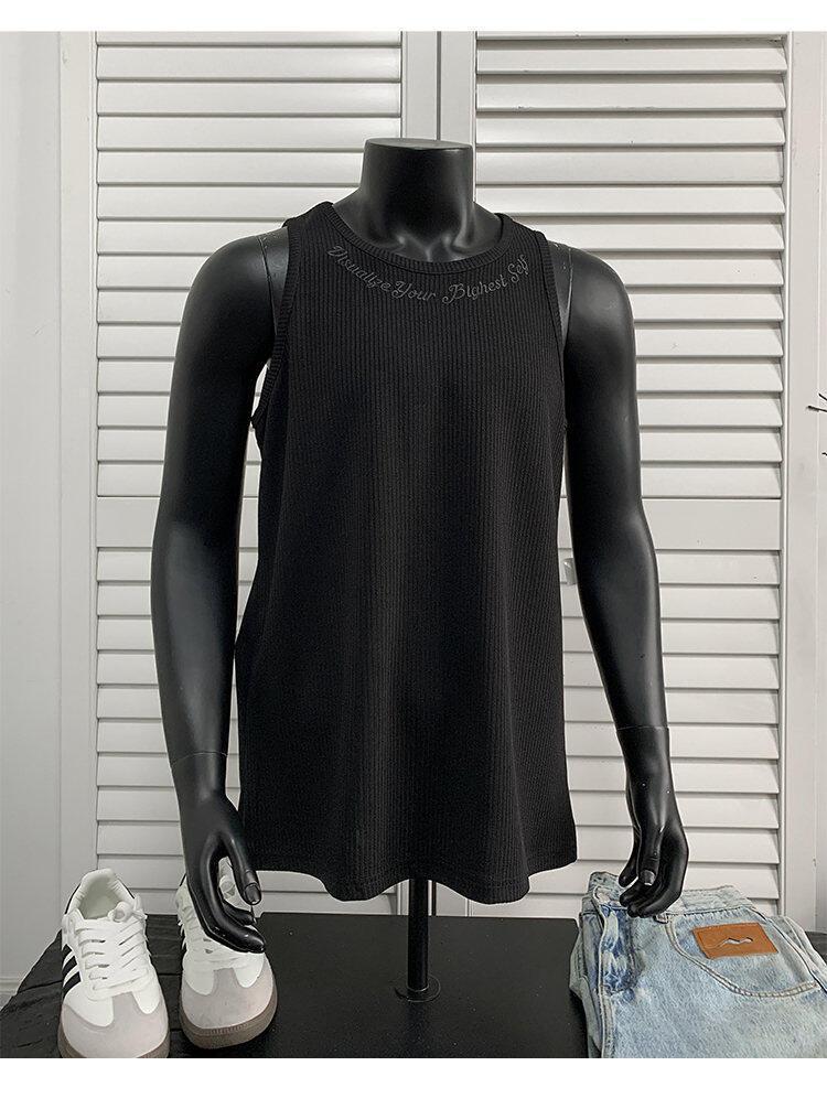 검은 모양의 거리 편지 자수 조끼 남자 미국식 클린 핏 민소매 티셔츠 틈새 구덩이 스트립베이스 셔츠