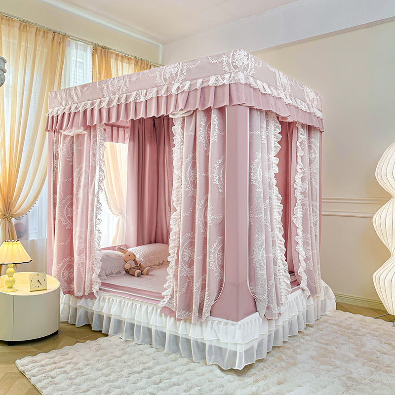 가정용 3 도어 침실 아기 및 어린이 낙하 방지 침대 패턴 텐트를위한 새로운 2025 침대 커튼을위한 빛 차단 및 낙하 방지 모기장