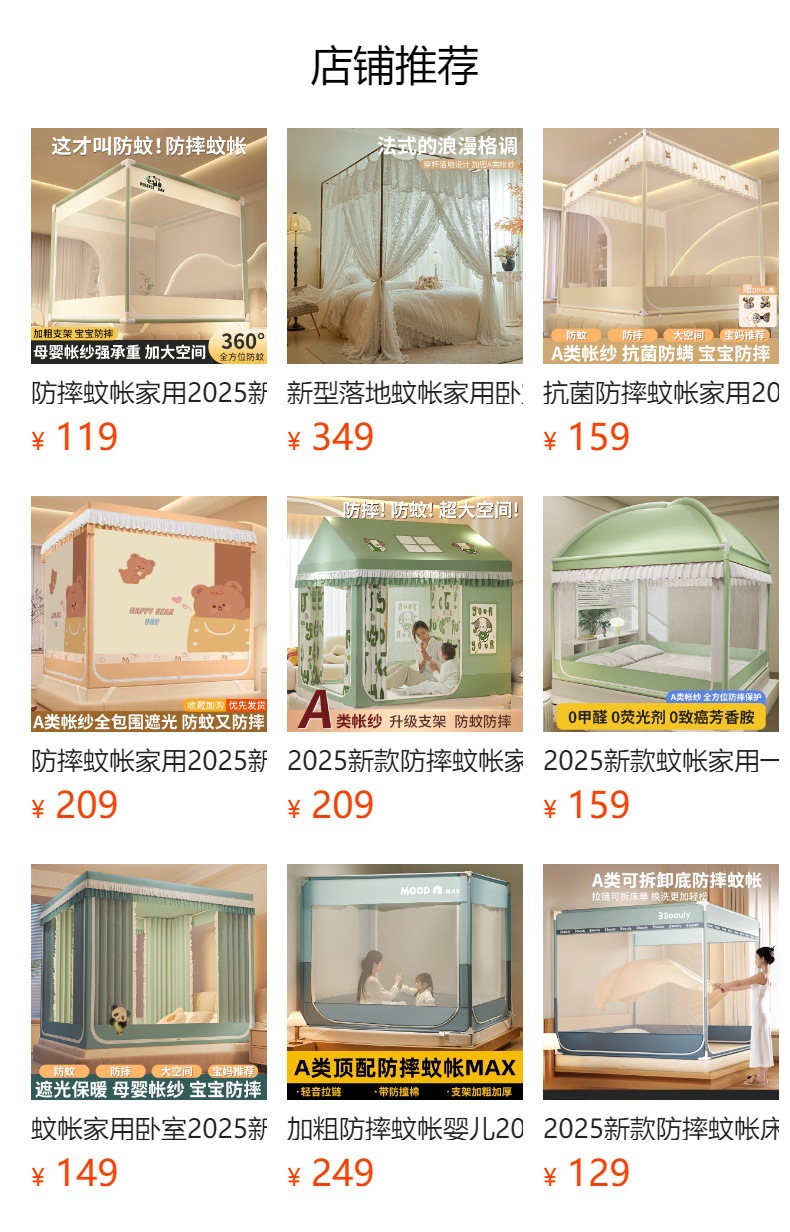 가정용 3 도어 침실 아기 및 어린이 낙하 방지 침대 패턴 텐트를위한 새로운 2025 침대 커튼을위한 빛 차단 및 낙하 방지 모기장스토어 가기